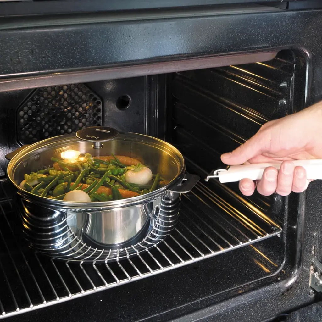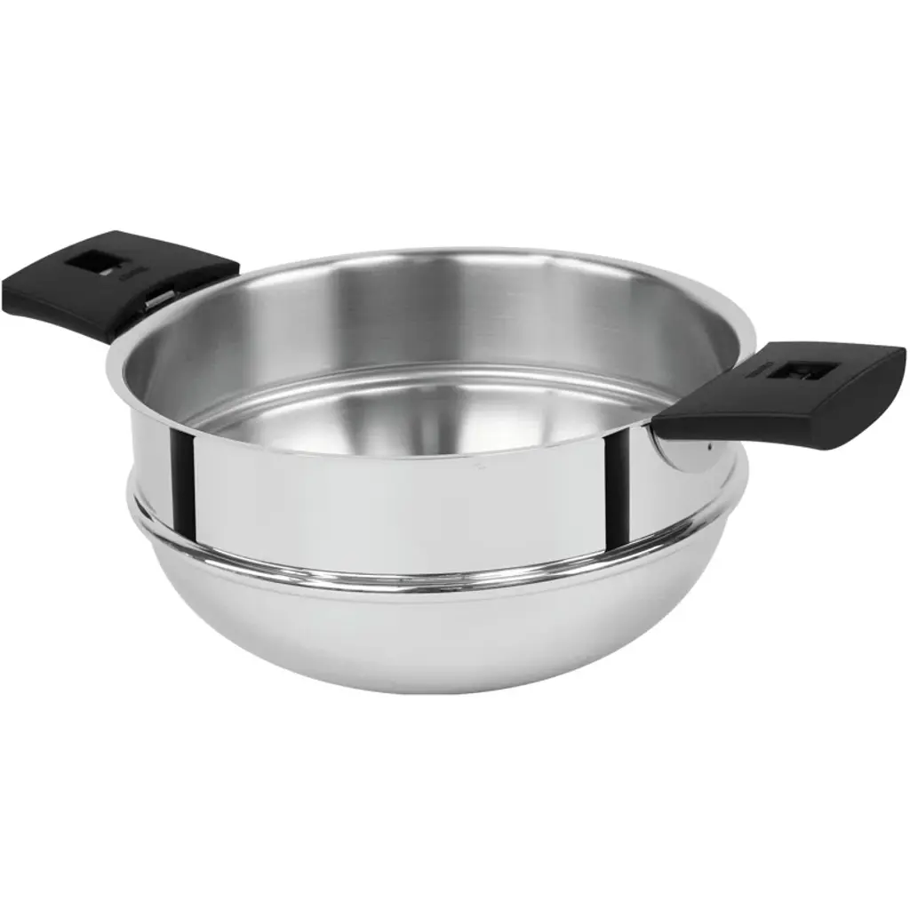 Stainless steel Bain-marie inserts, shiny finish, detachable handle. The Cristel Bain Marie's adapt to Cristel vessels (saucepans and saute pans) of the same diameter. The stainless steel bain-marie inserts from the Detachable collection fit Cristel saucepans of the same diameter and remain perfectly stable when in use. The bain-marie insert is the essential cooking utensil for making sabayons, Béarnaise or Hollandaise sauces and melting chocolate. The bain-marie is also a gentle cooking method for heating or reheating the most delicate preparations. The bain-marie insert preserves the taste of your food and is easy to clean after cooking.
