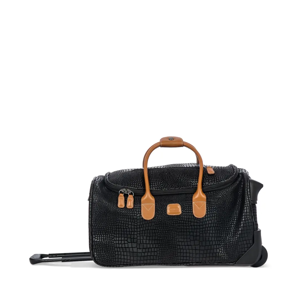 Crafted from durable PVC coated cotton, Bric's My Life collection includes 4-wheel spinners, rolling duffels and cargo bags that are lightweight and versatile. This 21" rolling carry-on duffel is water-resistant and features a retractable handle, 2 wheels and one rear zipper compartment.
