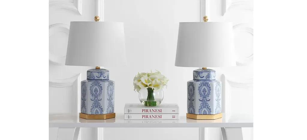 Inspired by the splendor of ancient ginger jars, this captivating Myla Table Lamp Set is a design investment. The delightful pattern on its blue and white ceramic body is paired with a rich gold leaf finish. Sold in sets of two.