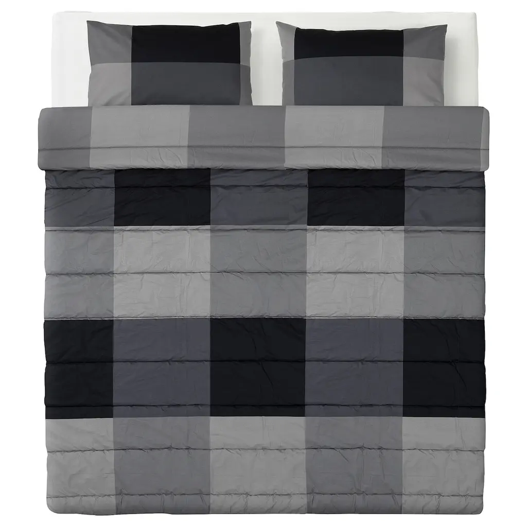 MYRGRÅMAL Comforter and 2 pillowcases - black Full/Queen. A good choice if you are allergic to dust mites since the quilt is machine-washable at 140°F (Warm), a temperature that kills dust mites. Made of 100% cotton - a natural and durable material that becomes softer with every wash.