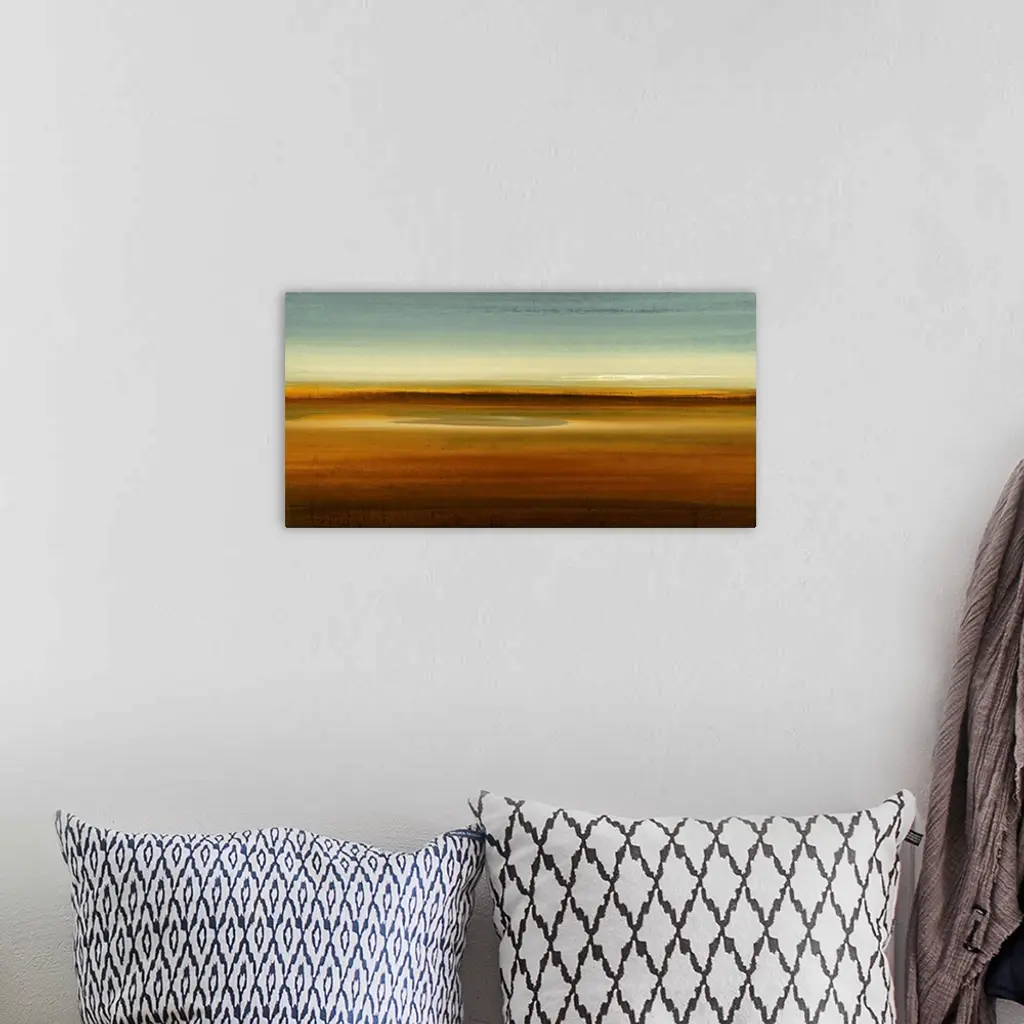Giant abstract art composed of earth tones that are layered on top of each other in horizontal rectangles.