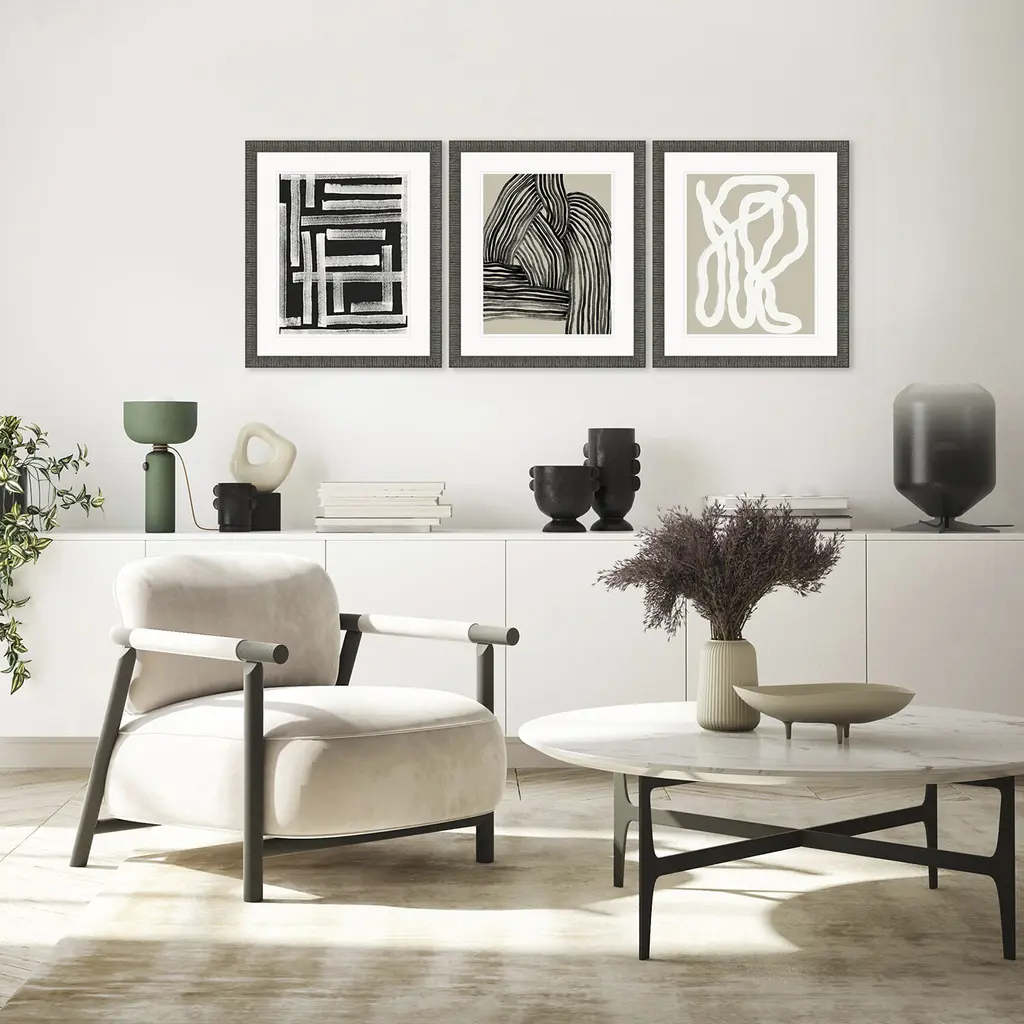 Naive Lines Black And Beige And Neutral And White Framed Art