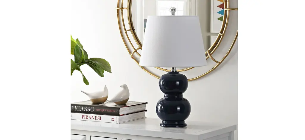 The subtle asymmetry of this Naji Ceramic Table Lamp gives any room a flowing sense of motion, making it perfect for today's contemporary d_cor. Naji's dramatically sculpted ceramic shines in a rich navy finish, while a tapered white shade makes it absolutely timeless.