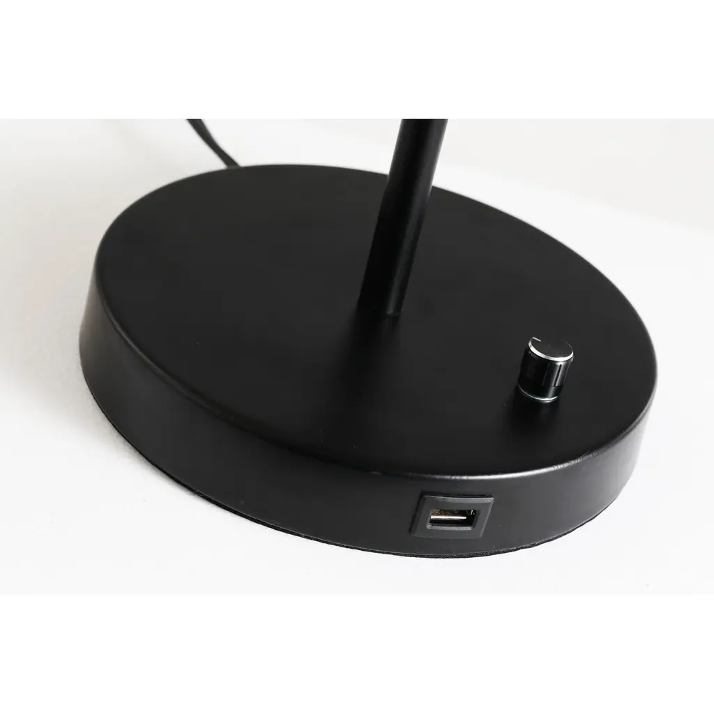 Looking to add a unique light fixture to your home? Look no further than the Nakuv table lamp. Bohemian meets modern design in the rattan-style PVC lamp shade with velvet accents stitched around the rims. Sleek and functional, the black metal base includes a USB port for charging your phone, tablet or other small devices. This lamp is the ideal addition to any modern, transitional or bohemian home, and is perfect for living rooms, bedrooms or home offices. For a warm and inviting look, we recommend using a warm colored or vintage bulb. Bulb not included.