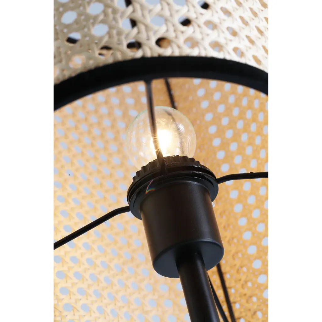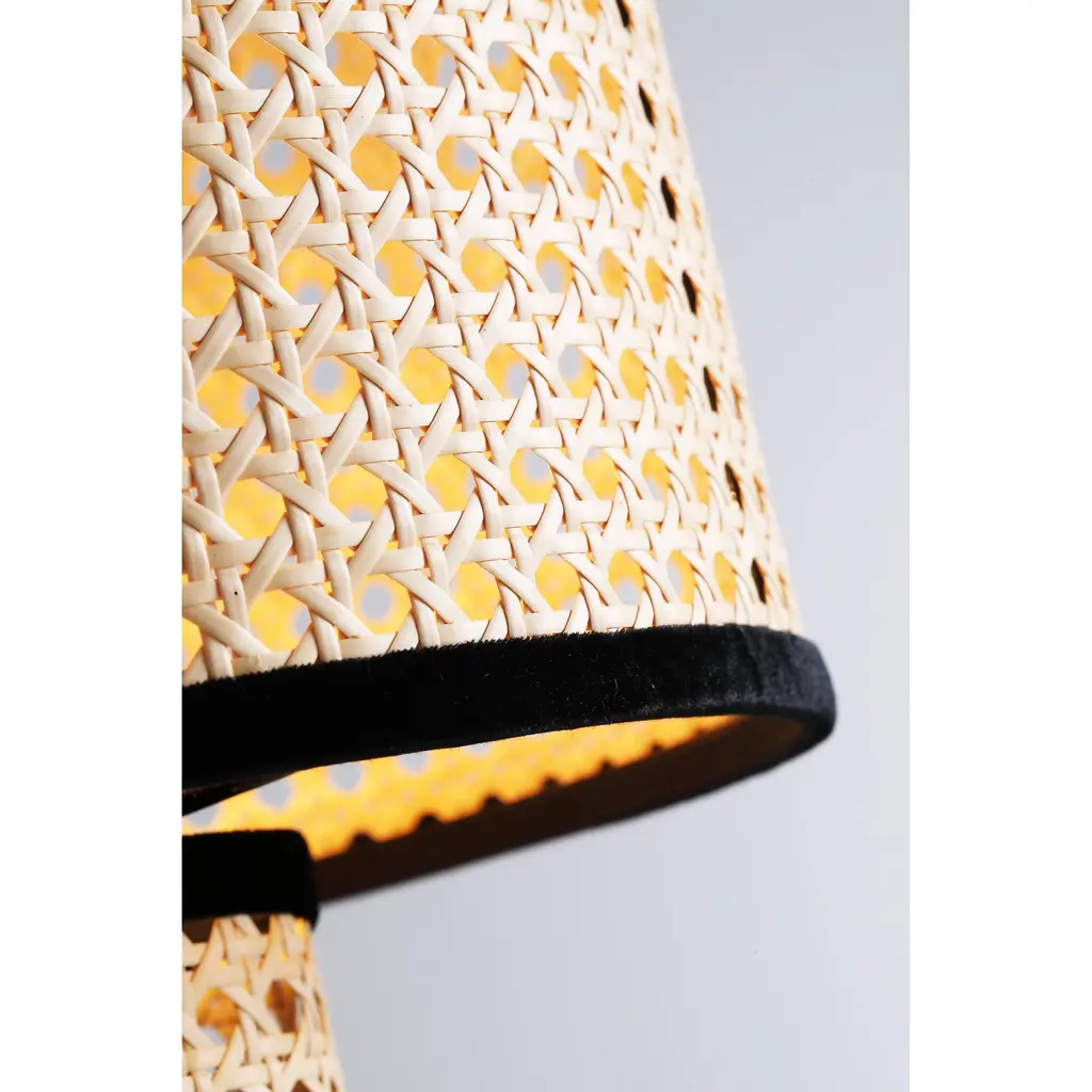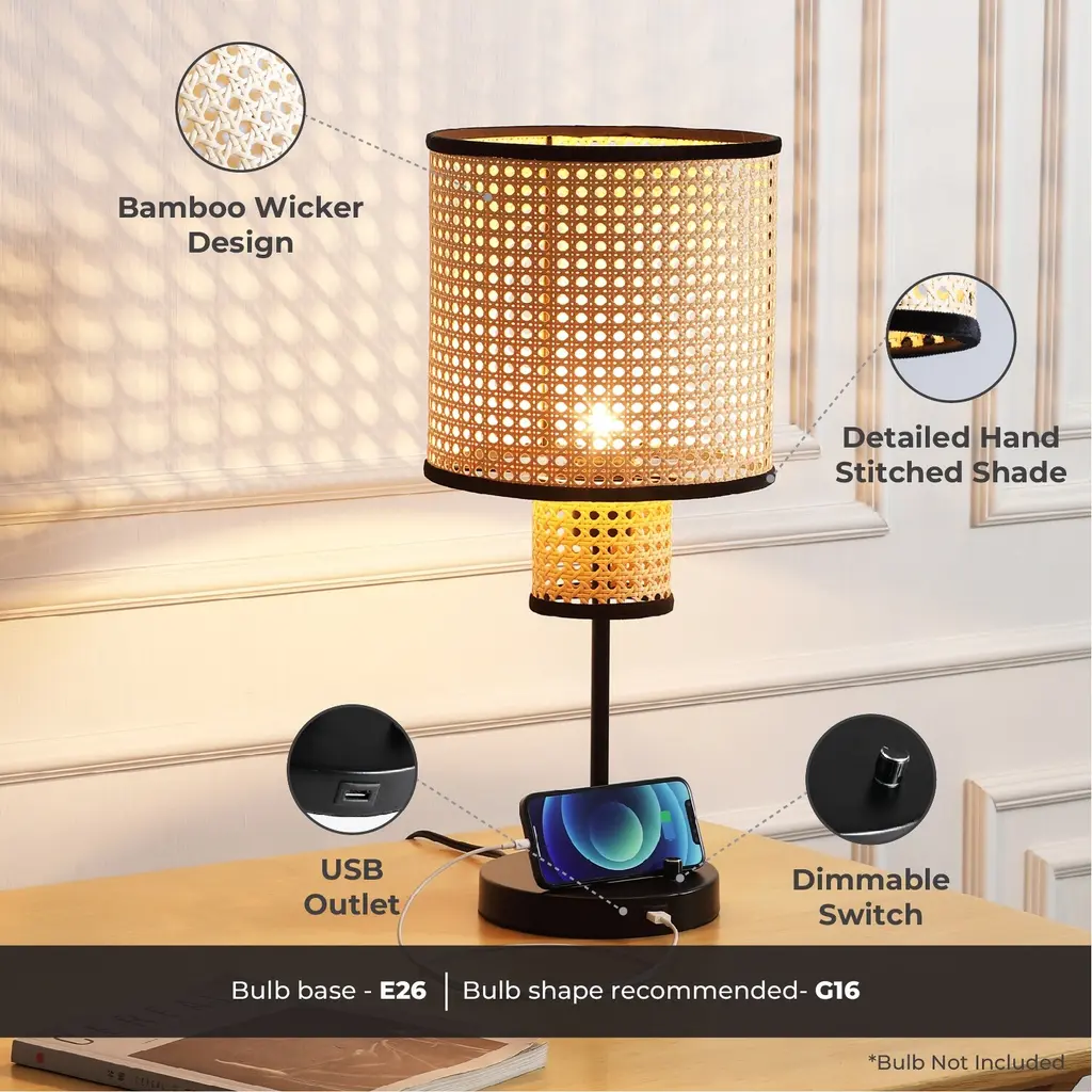 Nakuv - Modern Bohemian Table Lamp With 2 Tier Rattan Shade And Velvet Detailing, With Usb Port - 22.44" X 9.84" - 22.44" X 9.84" - Black/beige