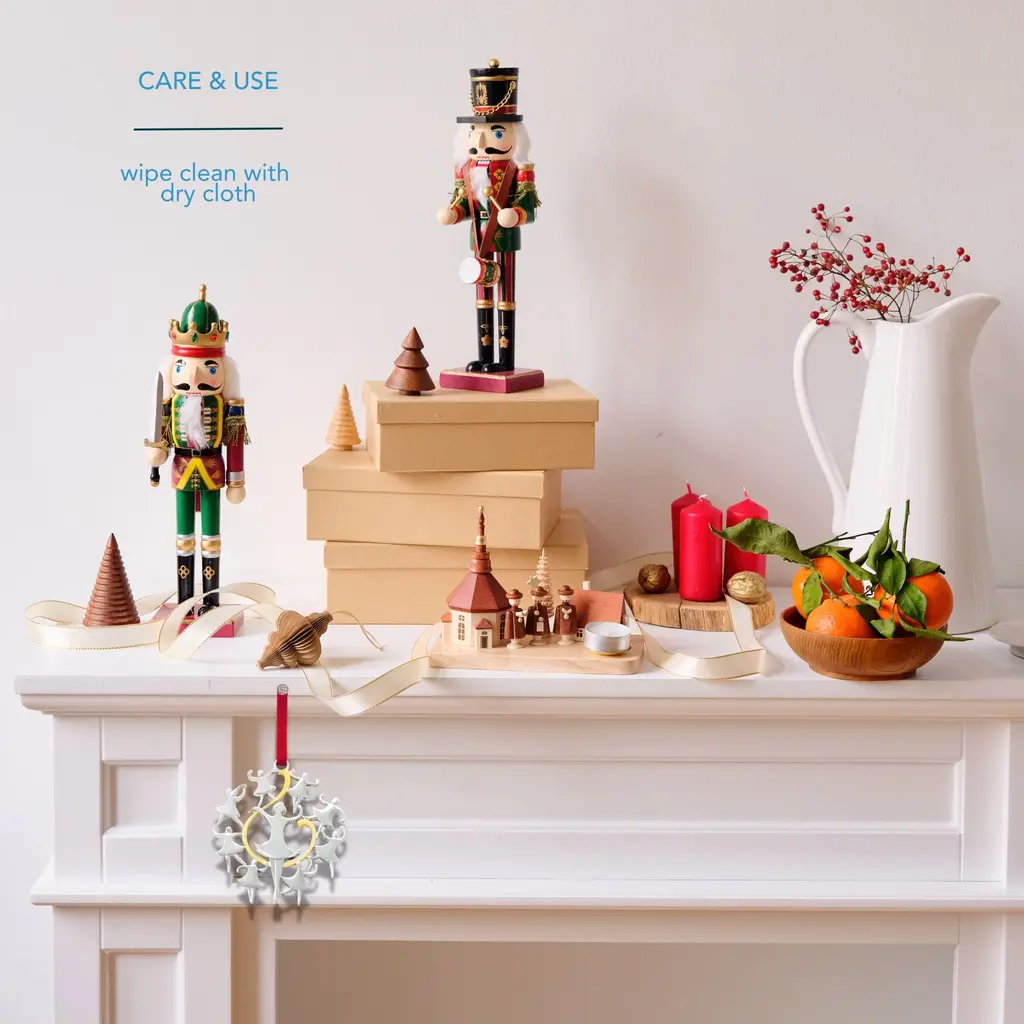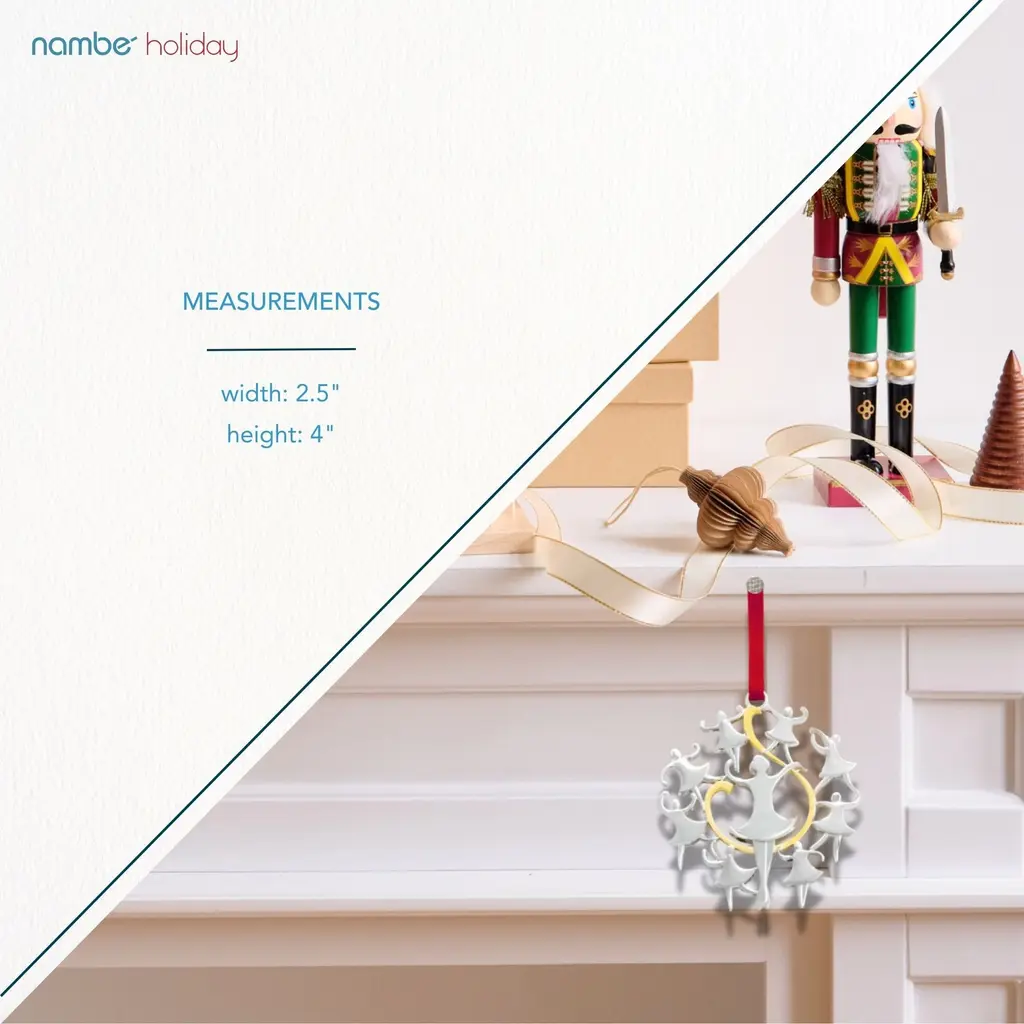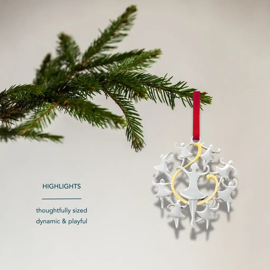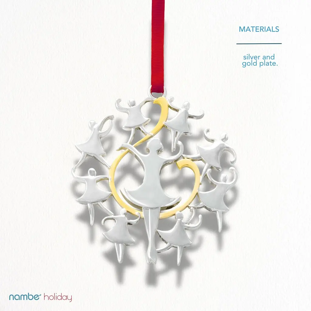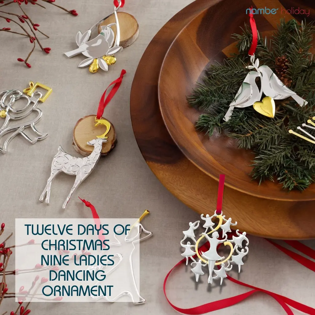 Nambe 12 Days of Christmas Ornament - Silver & Gold-Plated Holiday Decoration for Christmas Tree - Unique Christmas Tree Decorations, Festive Ornament for Seasonal Home Decor (Nine Ladies Dancing) - NewEmbrace the holiday spirit with the Nine Ladies Dancing Ornament, part of the Twelve Days of Christmas Ornament Series. This piece brings the classic carol to life, making it an exquisite addition to any festive setting. Expertly crafted from lustrous Silver Plate and accented with delicate touches of Gold Plate, this ornament stands out with its elegant detailing. Its sleek design and intricate craftsmanship are not just decorative but evoke the joyful magic of the season. Whether placed on your tree or arranged elsewhere in your home, it is an eye-catching focal point that adds warmth to your holiday gatherings. The Nine Ladies Dancing Ornament is more than a decoration; it’s a cherished keepsake that celebrates the joy of the holidays. It’s part of a collectible series that captures the essence of the Twelve Days of Christmas, making it a wonderful gift for friends, family, or even yourself. Its versatility allows it to be used in various festive settings, adding a luxurious yet understated glow wherever it’s placed. Care for this ornament is effortless, requiring only a light wipe with a dry cloth to maintain its gleaming surface. Its durability ensures it will remain a treasured piece in your collection, bringing festive cheer to your home year after year. Celebrate the season with the Nambé Nine Ladies Dancing Ornament a timeless piece that captures the magic of Christmas with its beautiful combination of materials and expert craftsmanship.FEATURES:COLOR:MATERIAL:WHAT'S IN THE BOX:PACKAGING:Retail Packaging