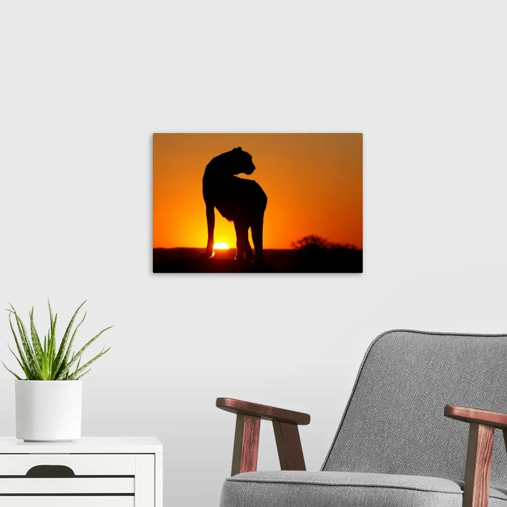 Namibia, Cheetah Silhouette At Sunset