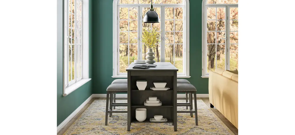 Cozy and inviting, the Napa counter-height dining table makes a beautiful addition to your home. Its small stature is a great choice for rooms with limited space. It's also versatile enough to work as a side table or storage spot. Three exposed shelves are great for your displaying your best dishware. With the beautiful wood tone, creating a cheery dining space is right at your fingertips.