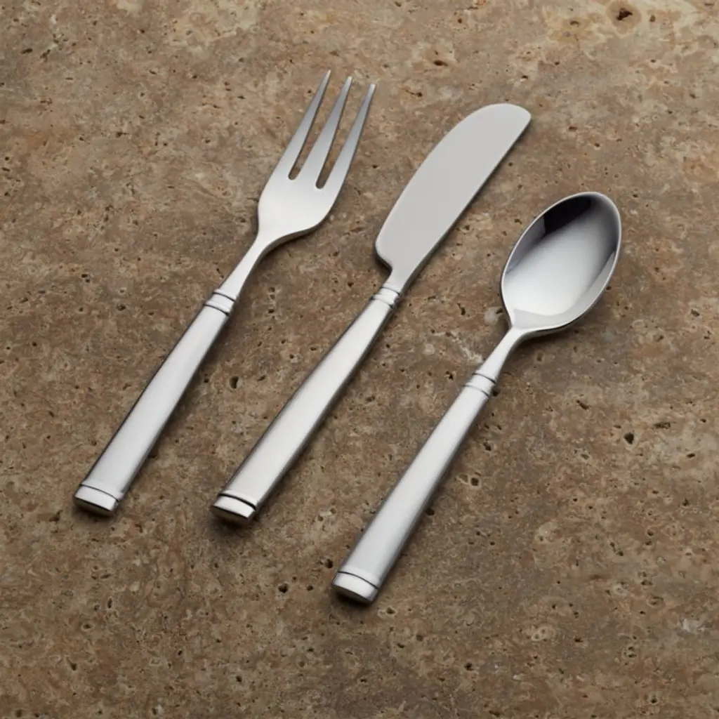 Elegant in its simplicity, this all-purpose appetizer spoon features classic Italianate banded handles to dress up hors d'oeuvres, dips, spreads and other light-bite presentations. Coordinating appetizer fork and spreader sold separately.