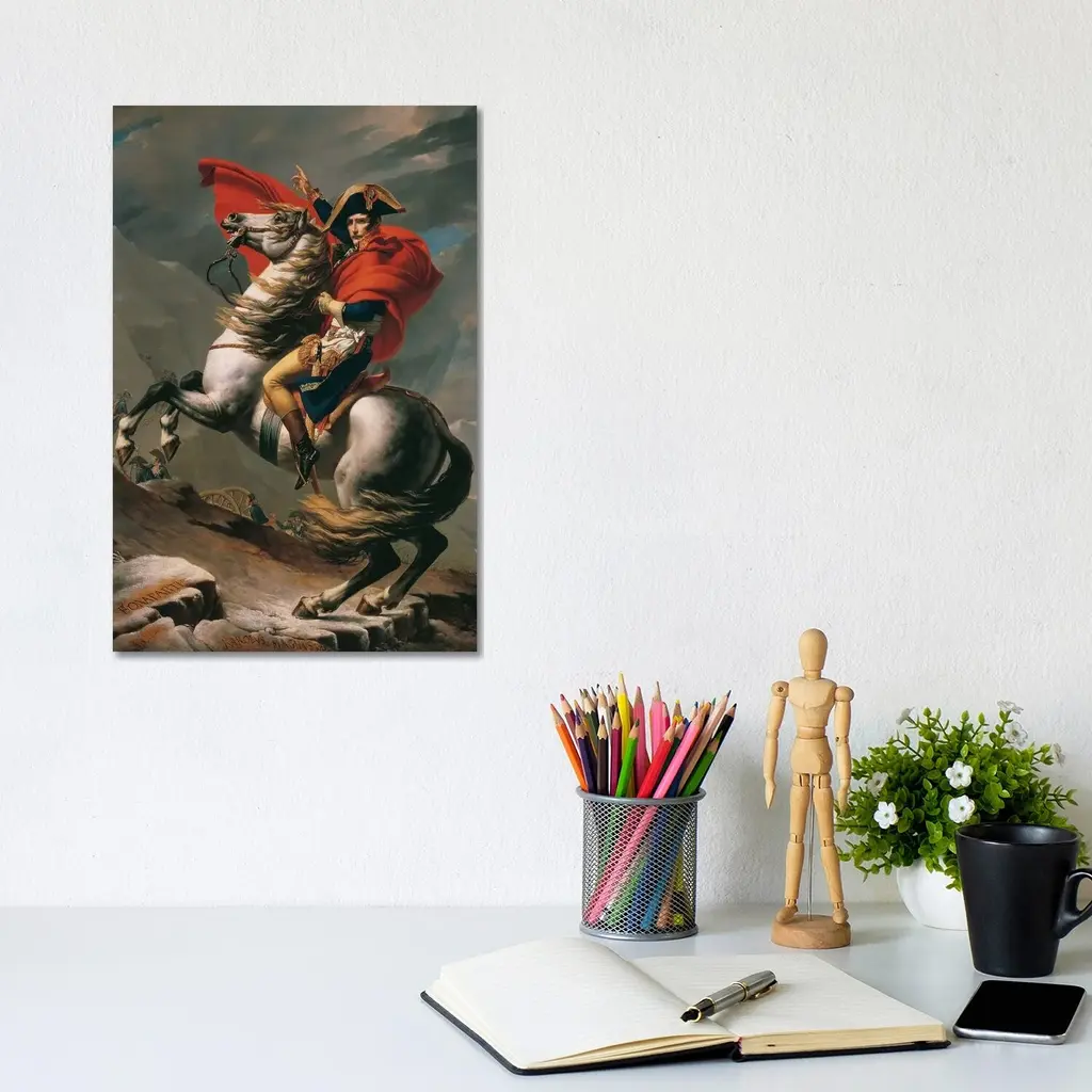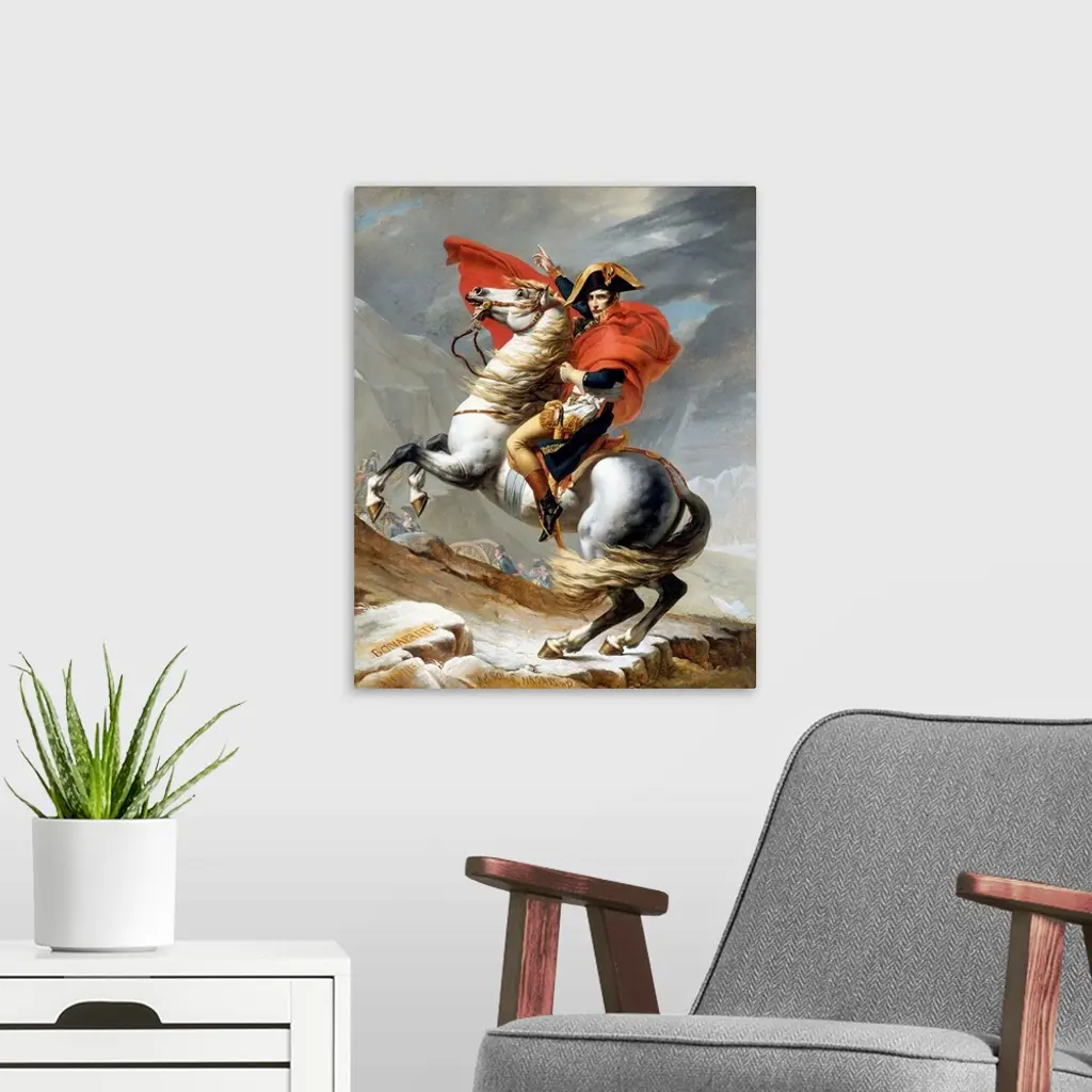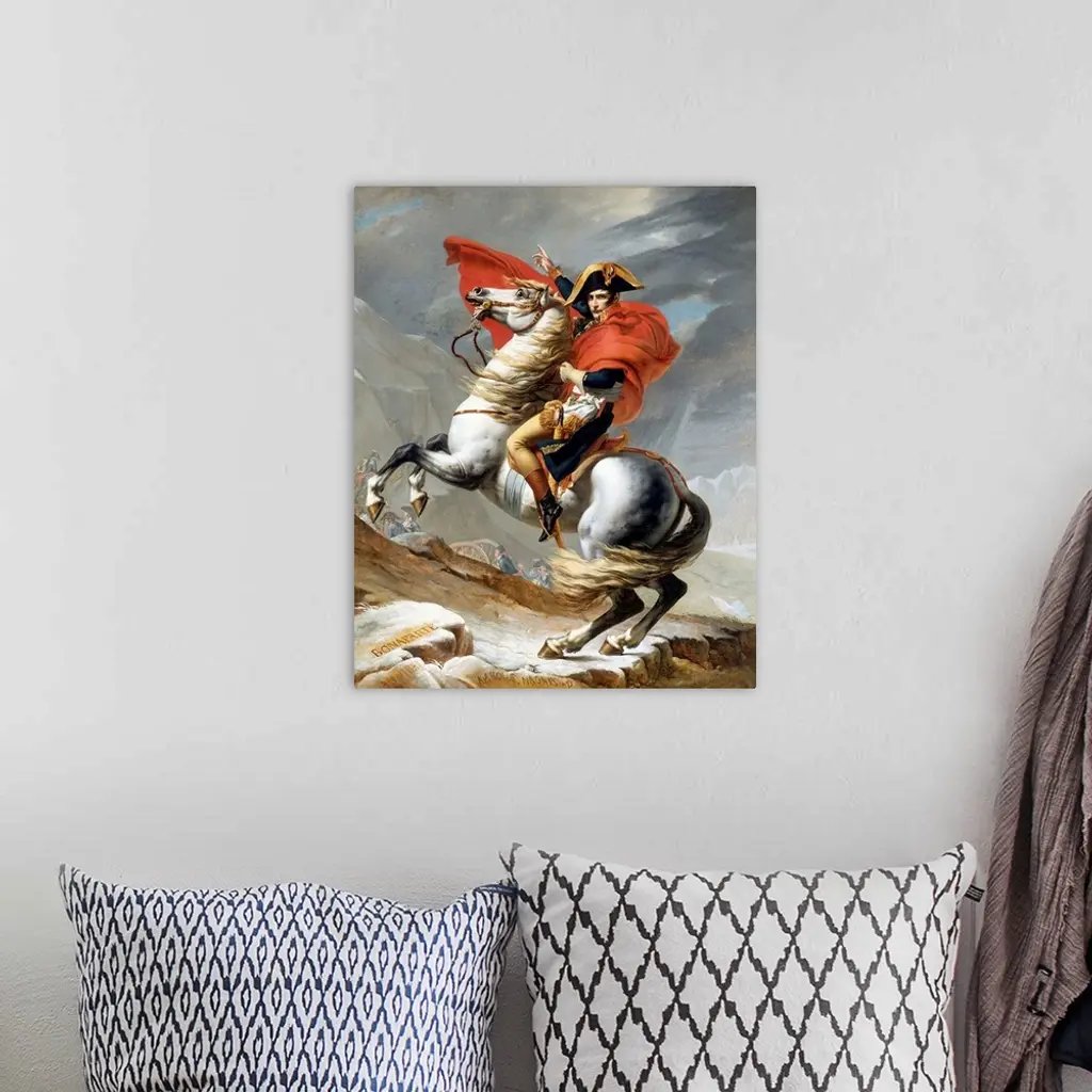 Napoleon Crossing the Saint-Bernard Pass, 20 May 1800. 1801-1802. Oil on canvas. 232 x 271 cm (91.3 x 106.7 in). Musee de l'Histoire de France, Versailles, France.