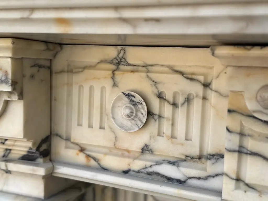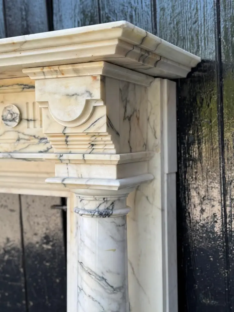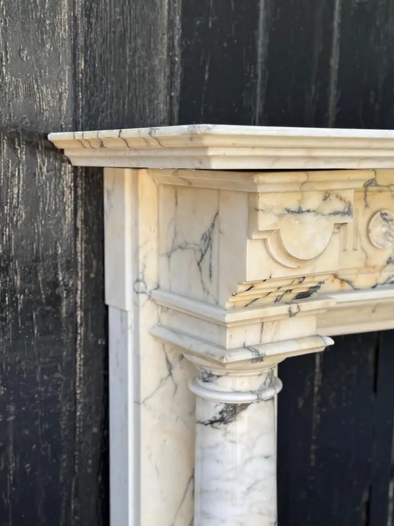 Napoleon Iii Mantel In Paonazzo Marble, Cartouche In Statuary White Marble
