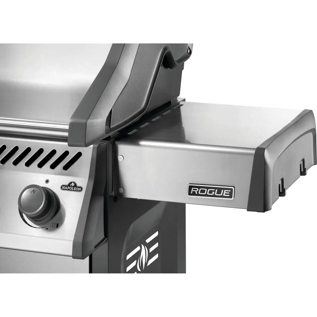 Napoleon's Rogue® 425 Natural Gas Grill is a premium, yet affordable BBQ marvel. With three burners that light instantly and effortless temperature control, it ensures perfect grilling or roasting. Its cast iron cooking grids deliver even heating and exquisite sear marks, while stainless steel sear plates help reduce flareups. Durable and stylish surface resists weather and wear. Foldable side shelves enhance storage versatility. Ignite instantly with battery-free ignition. Move effortlessly with locking caster wheels. Enjoy exceptional grilling in any space.Features:Product Technologies:Specifications: