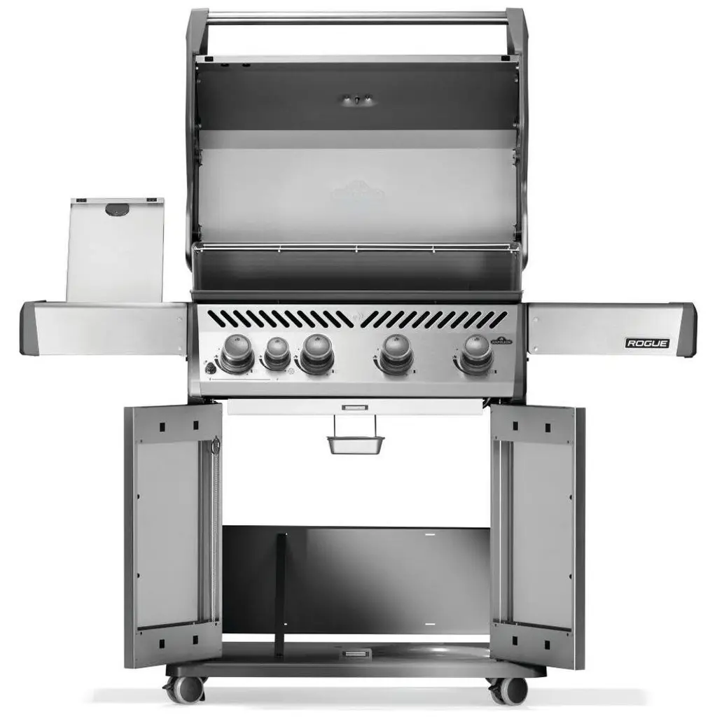 The sleek Napoleon Rogue® 525 Propane Gas Grill is a stylish upgrade for your outdoor living space. Achieve the best sear marks with their Wave stainless steel cooking grids. Four stainless steel burners ensure precise temperature control, while dual-level sear plates intensify flavors by vaporizing drippings. With an abundance, create mouthwatering meals for any occasion. An integrated Range Side Burner makes sauces and sides a breeze. Durable and stylish surface resists weather and wear. Maneuver with ease using locking casters and save space with folding stainless steel side shelves. Experience unmatched versatility, quality, and affordability with this Napoleon Rogue® Gas Grill.Features:Product Technologies:Specifications:
