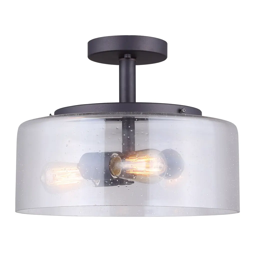 Enhance your home with the Nash 3-Light Semi-Flush Mount Ceiling Light, a stunning blend of classic and modern design. Featuring an oil rubbed bronze finish and a seeded glass shade, this fixture brings elegance and functionality to any space. The three-light design provides soft, diffused illumination, making it perfect for hallways, bedrooms, kitchens, and entryways. Measuring 13 inches wide and 9.5 inches high, this ceiling light offers a stylish yet compact design that complements industrial, transitional, and farmhouse interiors. Installation is quick and easy, with all necessary mounting hardware included. Compatible with three 60W E26 bulbs (not included), this semi-flush mount light allows you to customize brightness and warmth to suit your space. Elevate your home with this versatile and timeless lighting solution.Timeless and Elegant Design: The Nash 3-light semi-flush mount fixture features an oil rubbed bronze finish with a seeded glass shade blending classic and modern styles for a versatile lighting solution.Soft and Diffused Illumination: The seeded glass shade creates a warm inviting glow while reducing glare making it an ideal lighting choice for hallways bedrooms kitchens entryways and other interior spaces.Compact and Stylish Size: Measuring 13 inches wide and 9.5 inches high this ceiling light fits seamlessly into various rooms providing ample illumination without overpowering the space.Easy Installation with Included Hardware: Designed for quick setup this semi-flush mount fixture comes with all necessary mounting hardware allowing for a hassle free installation in any home or office.Compatible with Standard Bulbs: Supports three 60W E26 bulbs not included giving you the flexibility to choose warm or cool lighting to match your home’s ambiance and design preference.
