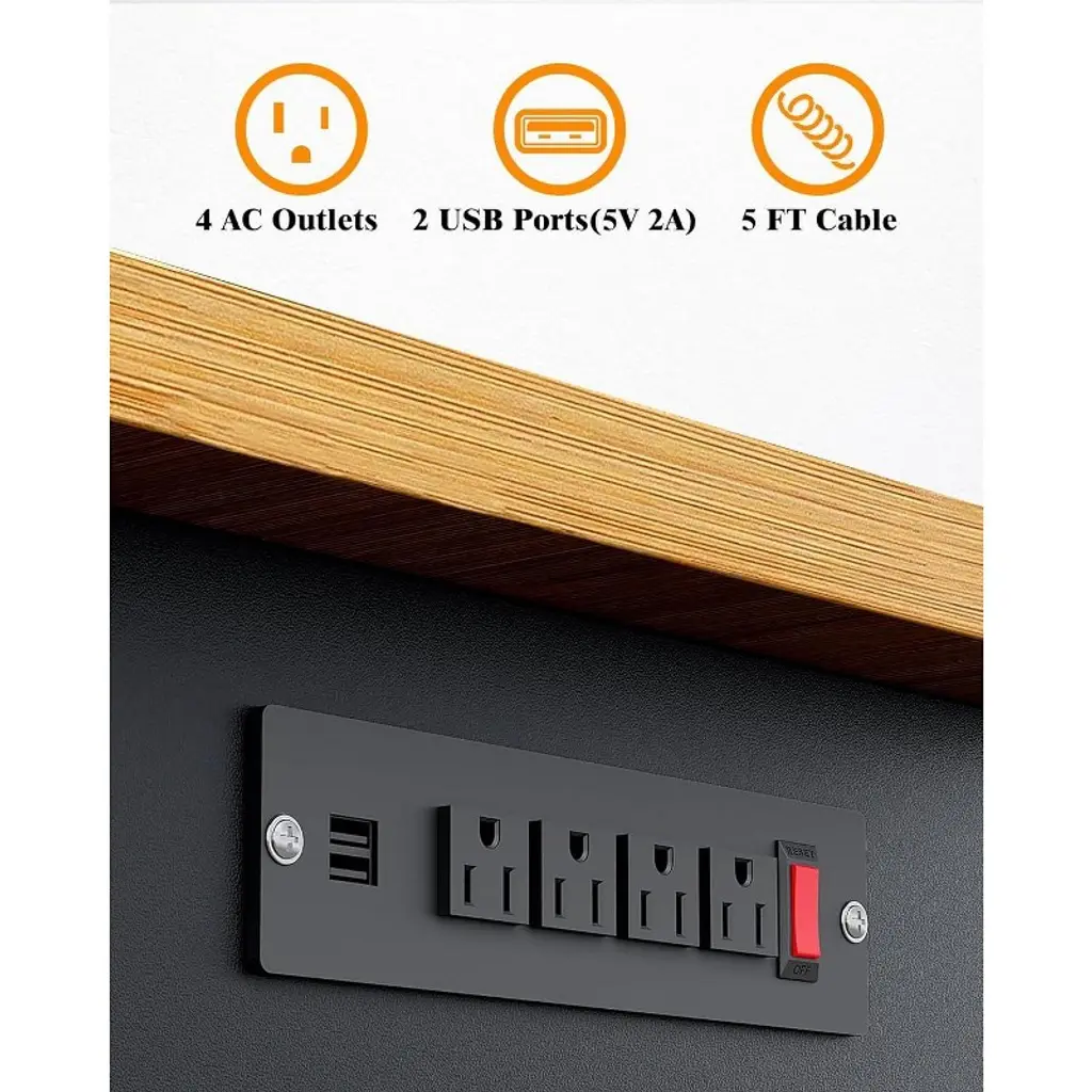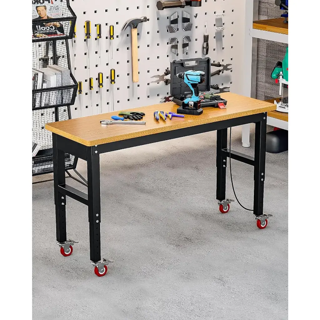 This professional-grade 60" x 20" workbench features an ultra-sturdy H-frame steel construction supporting 2200 lbs, with your choice of mobile wheels or stabilizing base. The premium bamboo top offers a durable, lacquered work surface while the tool-free height adjustment (27.6"-42.1") enables ergonomic sitting/standing positions. Integrated power includes 4 grounded outlets and 2 USB ports with 5' power switch for tools/lighting. Non-slip foot pads ensure stability on uneven floors. Ideal for garages, workshops, or commercial spaces - combines industrial strength with modern functionality in a versatile workstation solution.