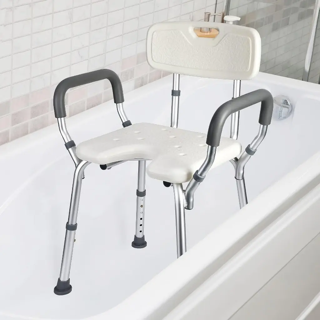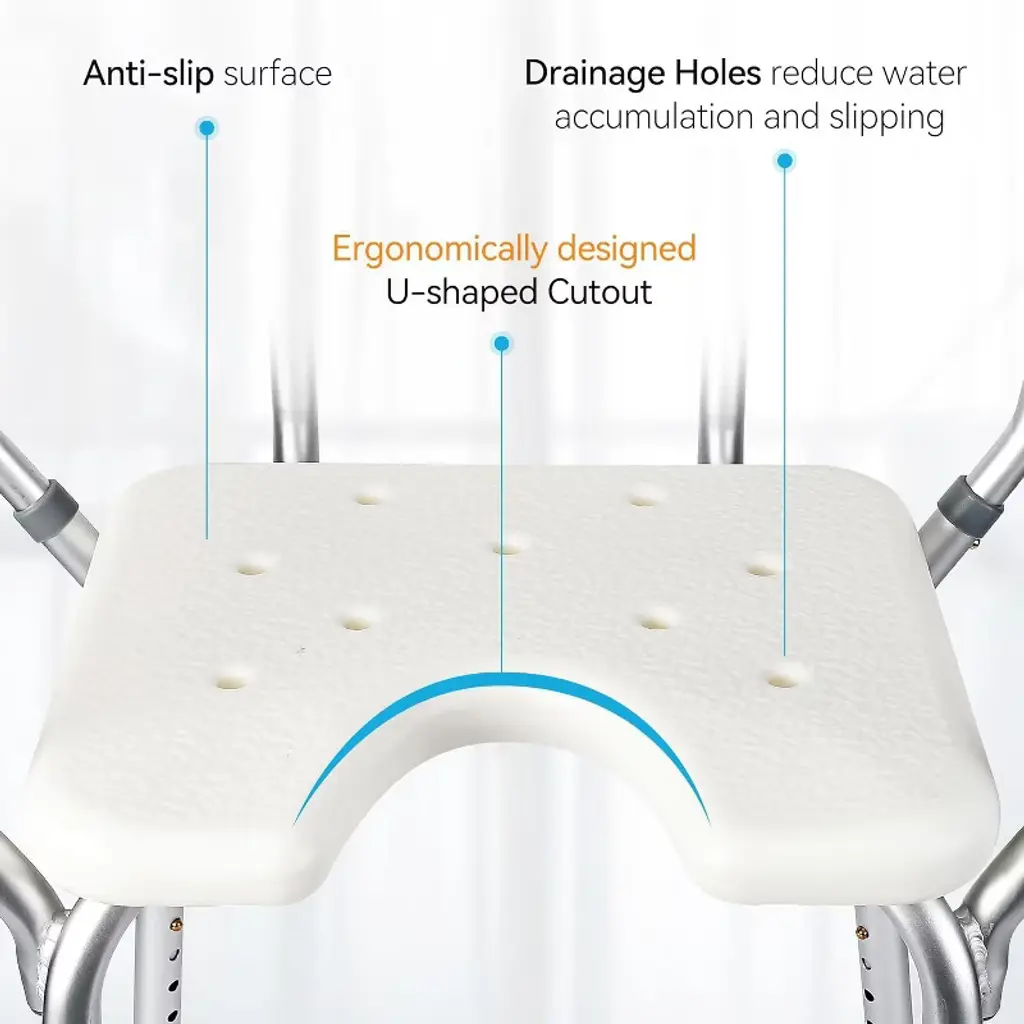 Nasitip U-shaped Shower Chair - Adjustable Height, Padded Arms & Back, 350lb Capacity, Non-slip Bath Seat For Elderly