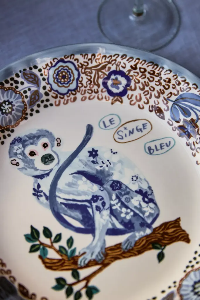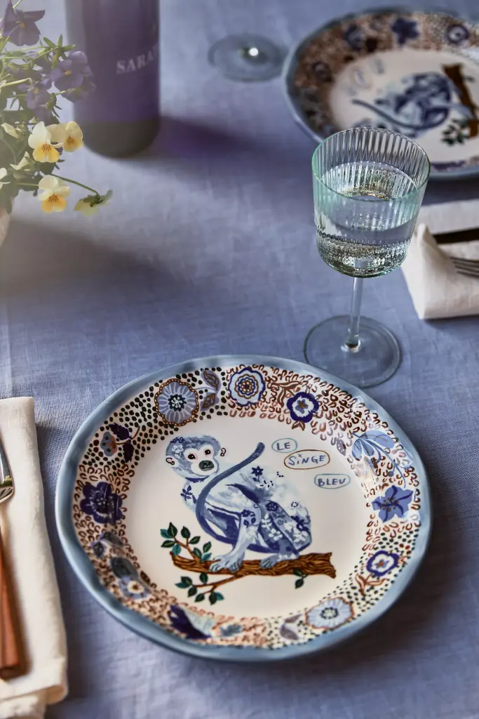 Overflowing with curious creatures, nostalgic florals, poetic scribbles, and a dreamy dose of charme français, this plate — designed by Nathalie Lété in collaboration with Anthropologie — makes a beloved accent to a dinner place setting or dessert spread. From her Parisian studio, French artist and designer Nathalie Lété creates a dreamlike world through works that center on themes of fantasy, humor, and childhood memories.