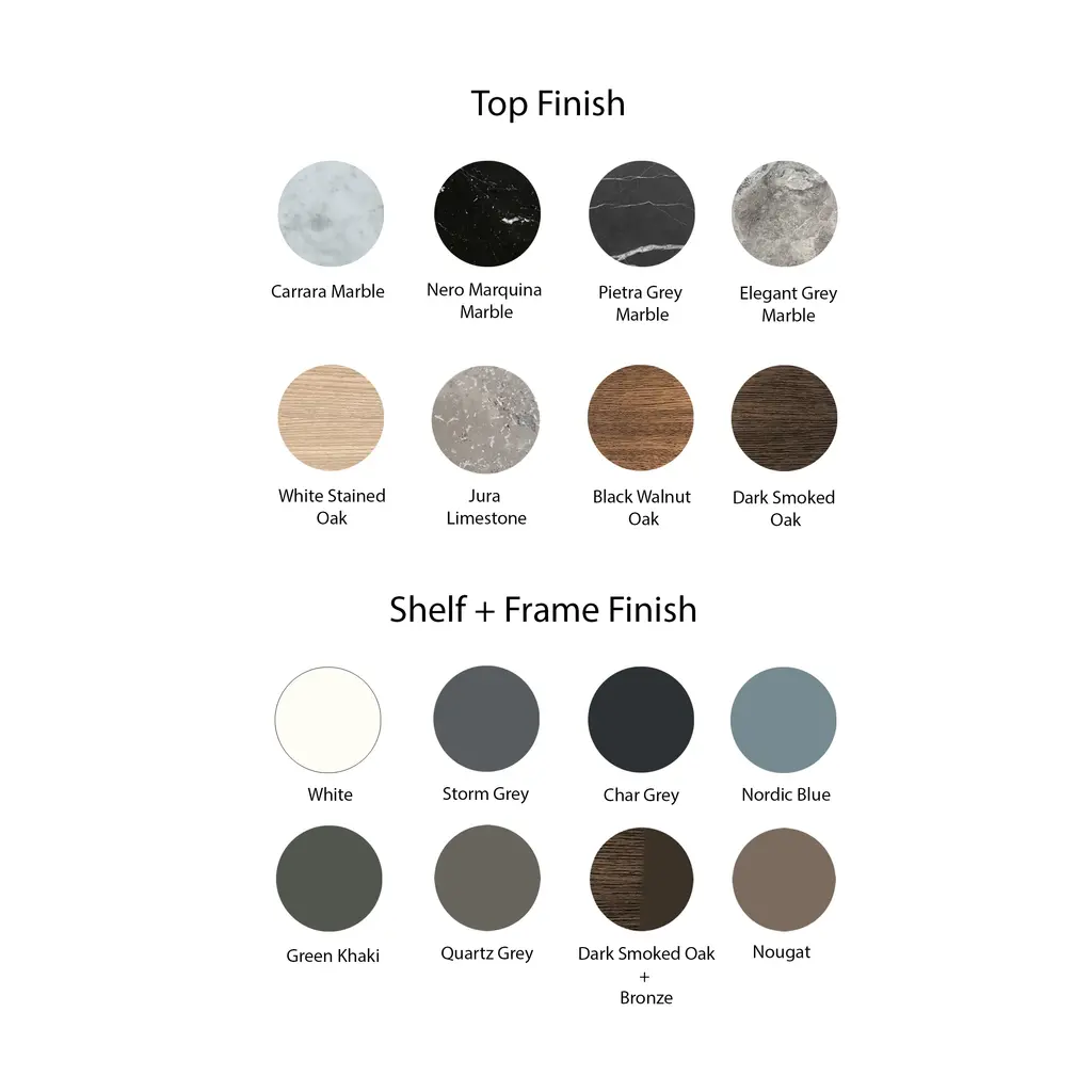 In a timeless storage piece, Nati Tati’s defining mix of elegant materials aligns with versatile functionality. Designers Johan Ridderstråle and Mats Broberg create an understated console in a choice of 2 heights with the collection’s characteristic arc of a metal frame supporting a top surface and handy shelf below. Richly contrasting with the lacquered metal structure and a matching shelf, the console’s top offers choices in solid marble and limestone varieties or in a range of stained oak finishes.