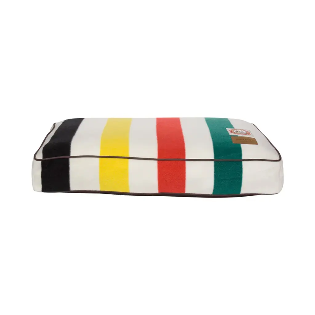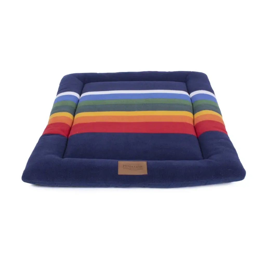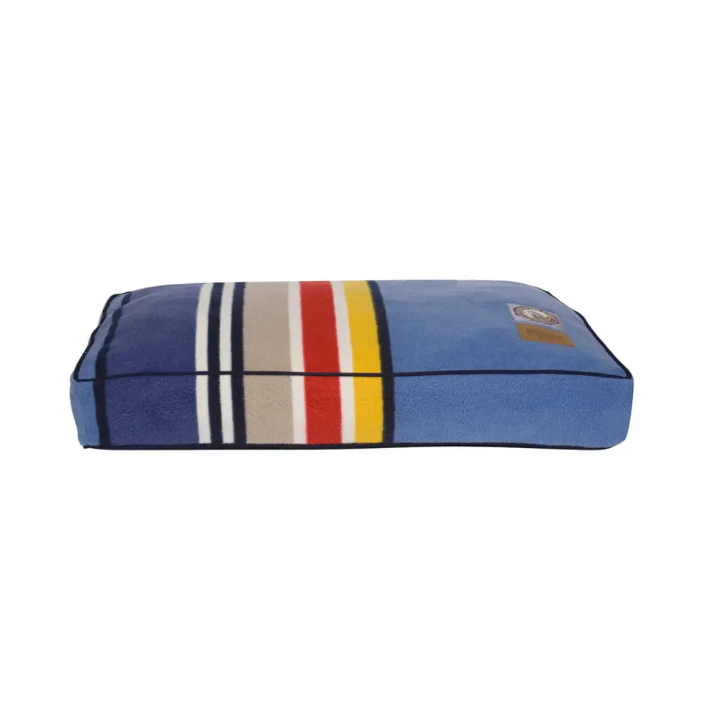 These beds feature the bold colors of the Pendleton® National Park blanket patterns on a durable non-pill polar fleece fabric. Our Pet Nappers are overstuffed with recycled high-loft memory fiberTM polyester fill. The insert features a channel design keeping the fiber in place. Plus, the zipped, removable cover is machine washable. The “Warranted To Be A Pendleton” suede patch and iconic woven National Park label adorn each bed. Features