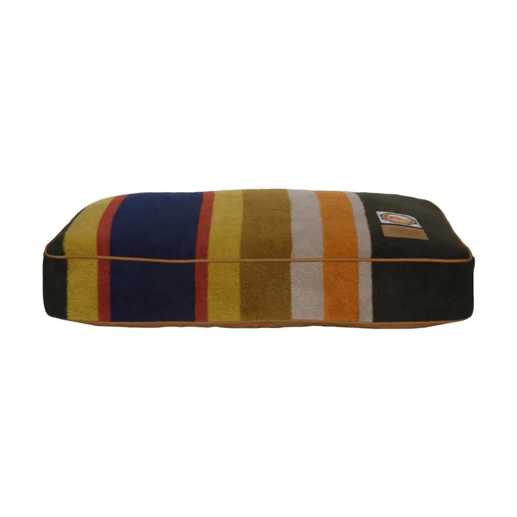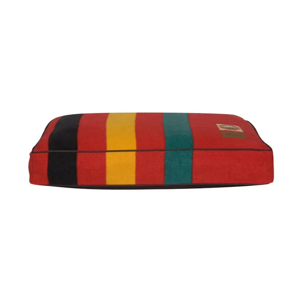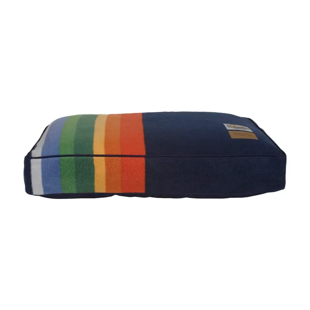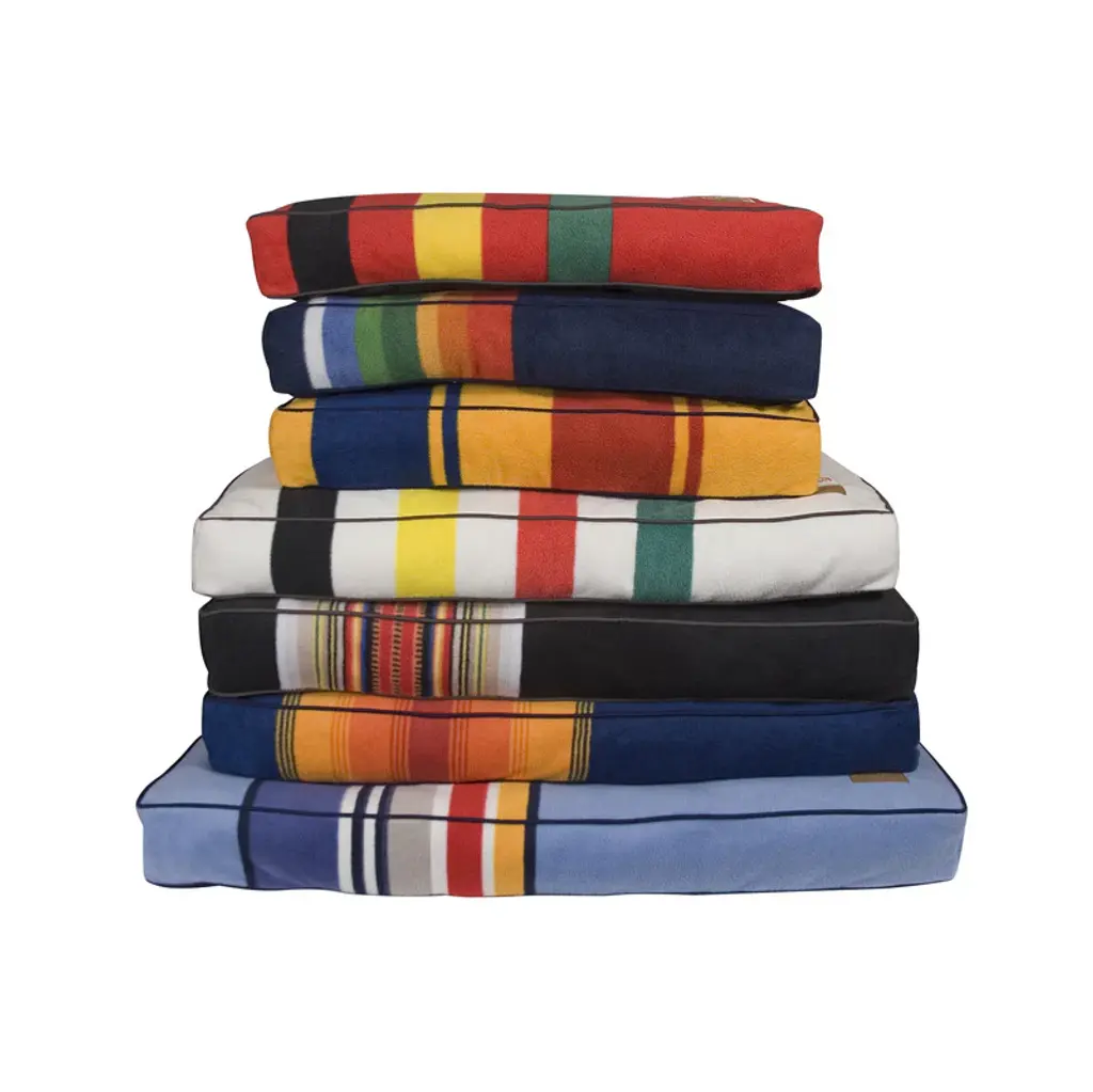 These beds feature the bold colors of the Pendleton® National Park blanket patterns on a durable non-pill polar fleece fabric. Our Pet Nappers are overstuffed with recycled high-loft memory fiberTM polyester fill. The insert features a channel design keeping the fiber in place. Plus, the zipped, removable cover is machine washable. The “Warranted To Be A Pendleton” suede patch and iconic woven National Park label adorn each bed. Features