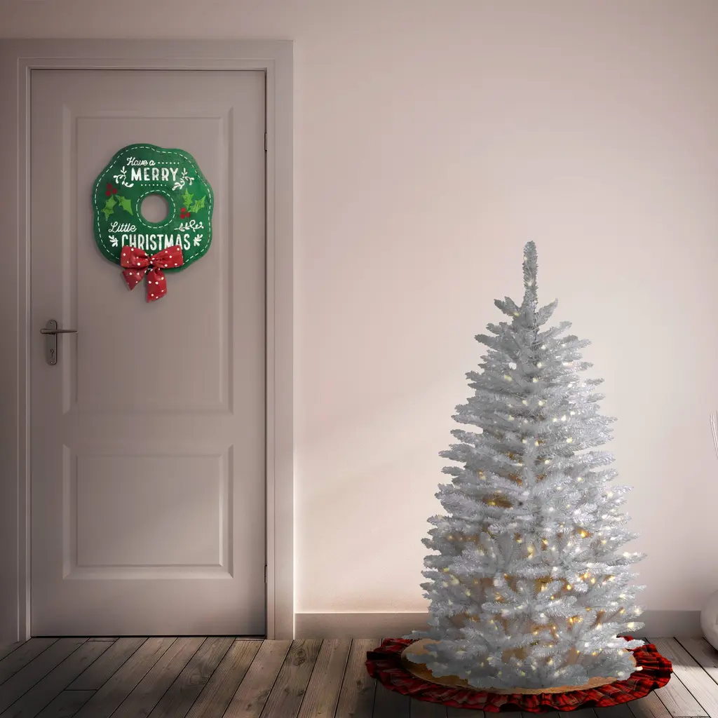 National Tree Company 4.5 Ft. Kingswood White Fir Pencil Tree With Clear Lights - 4.5 Foot - 4.5 Foot - White