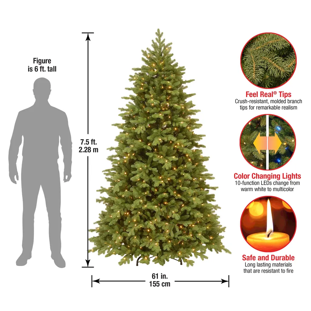 National Tree Company 7.5 Ft. Powerconnect Princeton Fraser Fir With Dual Color Led Lights - 7.5 Foot - 7.5 Foot - Green