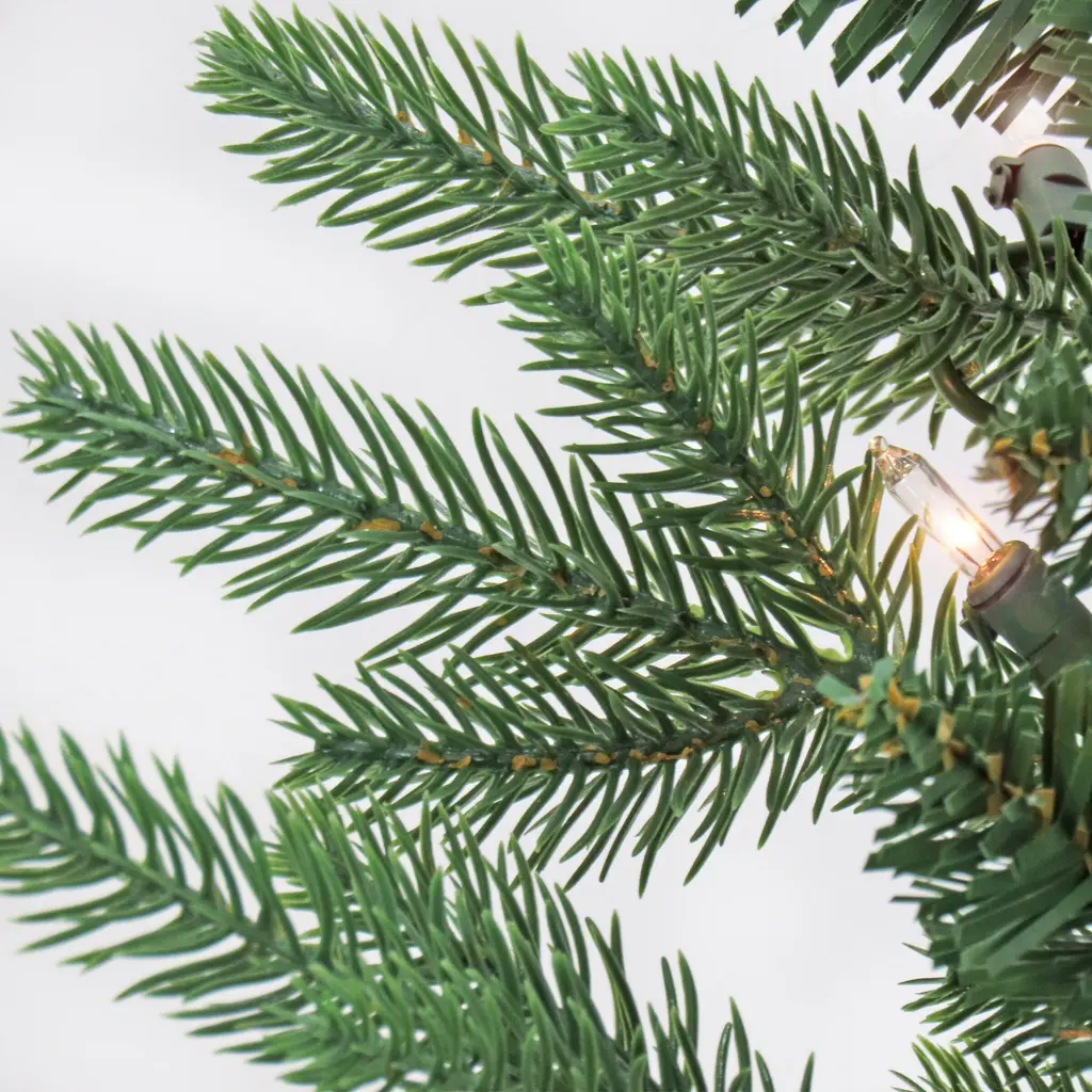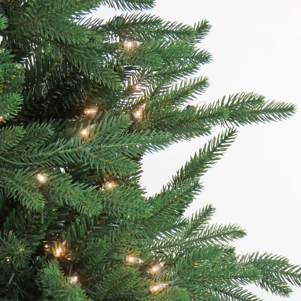 The Merryweather Fir Hinged tree brings the classic Christmas feel into any home. Features Feel Real® branch tip technology, creating a tree with remarkable realism. These crush-resistant branch tips are molded from real tree branches for an authentic living tree appearance. This full-bodied tree is generously pre-strung with 750 clear lights that remain lit even if a bulb burns out. Enjoy decorating for the holidays with this breathtaking, classic tree.