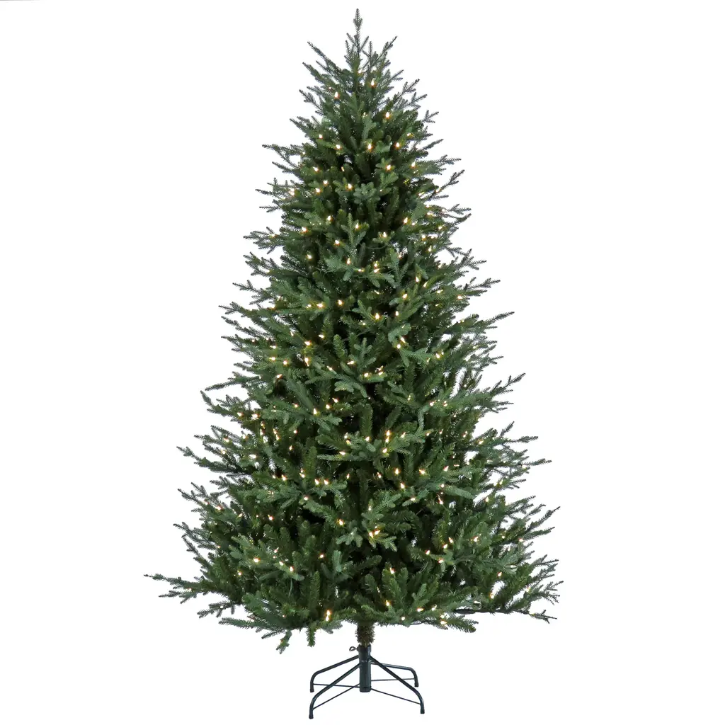 The Wenatchee Fir tree features Feel Real® branch tip technology, creating a tree with remarkable realism. These crush-resistant branch tips are molded from real tree branches for an authentic living tree appearance. This classic evergreen tree also features two-tone branch colors creating the look of new growth. It is pre-strung with 600 warm white LED lights that are long lasting and energy efficient. This three-section tree is designed with hinged branches for ease of assembly. Sturdy folding metal tree stand is included.
