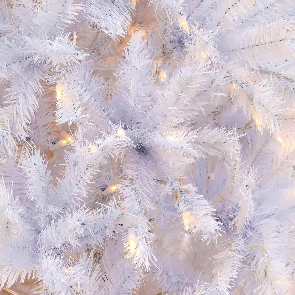 The Millville White Hinged Tree welcomes winter into your home. Features the PowerConnect™ through-the-pole lighting system that eliminates the need for connecting multiple light strings. This tree is pre-strung with 700 Warm White LED lights. Crafted with white hinged branches, this tree is made for both easy assembly and to impress any holiday guests.