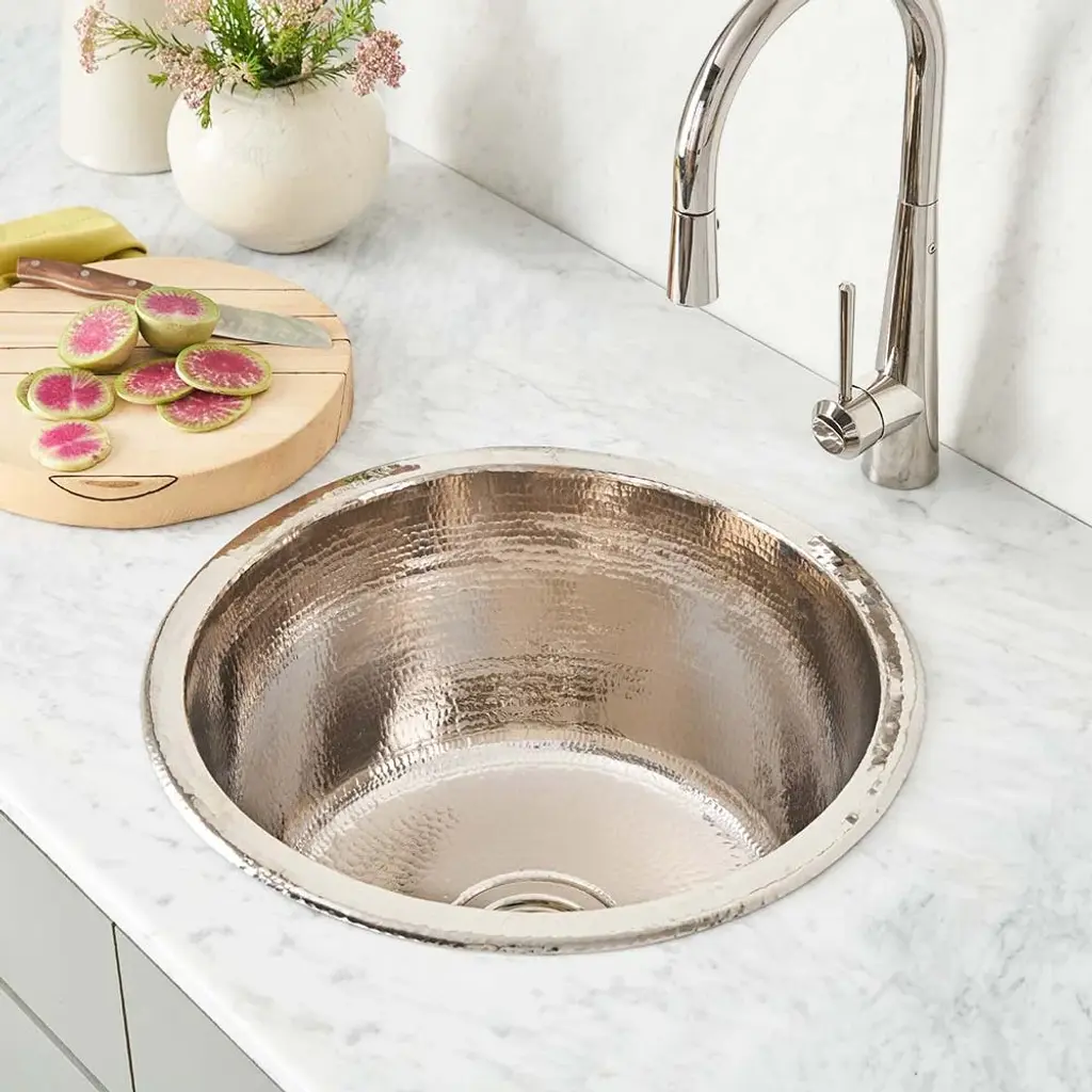 Native Trails Redondo 15-3/4" Single Basin Drop In Copper Bar Sink - Polished Nickel