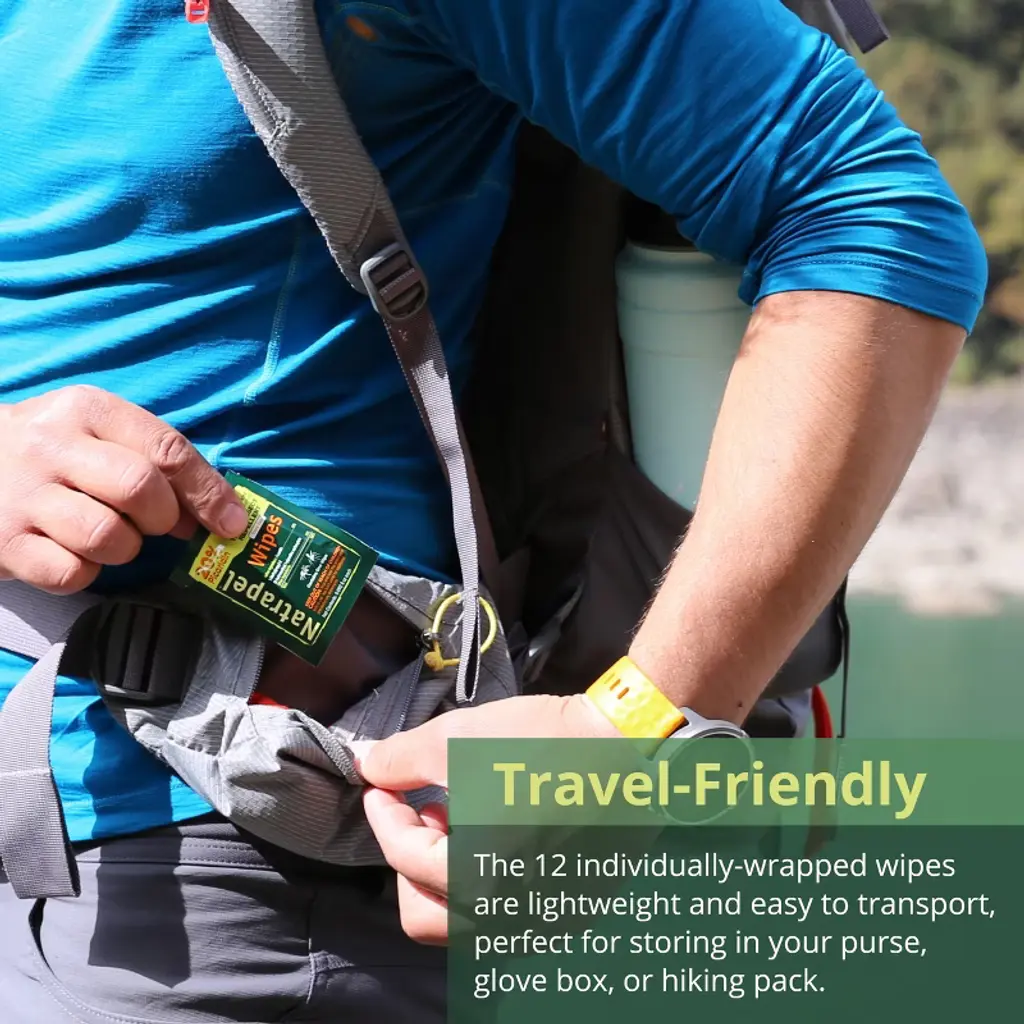 When the wilderness calls, Natrapel Picaridin Tick & Insect Repellent is your family's trusted companion. These powerful mosquito-repellent wipes are more than just a layer of defense; it's a ticket to embracing the joys of the great outdoors. With a hefty 20% Picaridin formula, these bug-repellent wipes for people are your shield against pesky mosquitoes, ticks, biting flies, and more, offering up to 12 hours of protection. Plus, the non-greasy formula and fresh scent make it enjoyable to use. Imagine setting off on a hike or camping adventure without the hassle of frequent reapplications. With Natrapel, you're covered all day, allowing you to focus on making memories rather than swatting bugs. Our formula is not only effective but also family-friendly. It?s gentle enough for the littlest explorers and robust enough for the most avid outdoor enthusiasts. It's a must-have piece of hiking gear for anyone who doesn't want the annoyance of insects to interfere with their outdoor activities. Our travel-friendly bug-repellent wipes are the perfect companion for any adventure. They fit seamlessly into any packable daypack or carry-on, ensuring you're never without protection. It's the ultimate traveling essential for those who love to embrace the great outdoors while staying bite-free. Natrapel is about more than just keeping bugs at bay; it's about providing peace of mind. With the active ingredient of Picaridin, you can step into nature knowing you're safeguarded from insects that bite. It's the ultimate chigger repellent and mosquito repellent spray for the body, and so much more. Whether you're grilling in the backyard, fishing at the lake, or trekking through the woods, Natrapel Picaridin Tick & Insect Repellent is the trusty bug spray for kids and adults alike. Get ready to experience the freedom of the outdoors, uninterrupted by the annoyance of biting insects. With Natrapel, your outdoor adventures just got a lot more enjoyable.