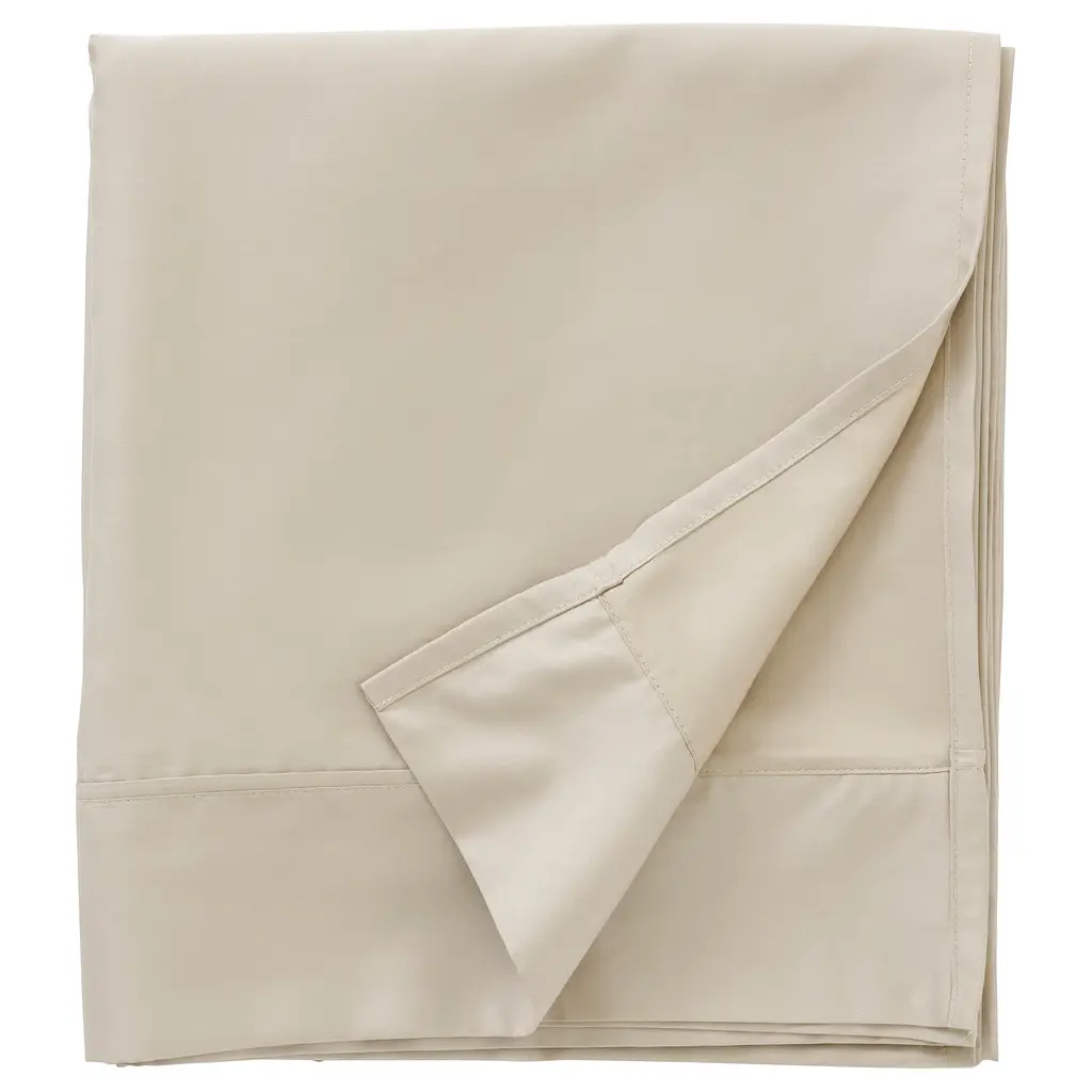 NATTJASMIN Flat sheet - light beige King. The high thread count (310) makes the fabric super soft and elegant. Sateen-woven bedlinen in cotton/lyocell is very soft and pleasant to sleep in, and has a pronounced luster that makes it look beautiful on your bed. 310 thread count.