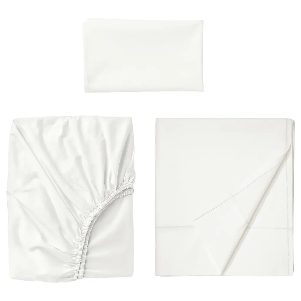 NATTJASMIN Flat sheet - white Twin/Twin X-long. The high thread count (310) makes the fabric super soft and elegant. Sateen-woven bedlinen in cotton/lyocell is very soft and pleasant to sleep in, and has a pronounced luster that makes it look beautiful on your bed. 310 thread count.