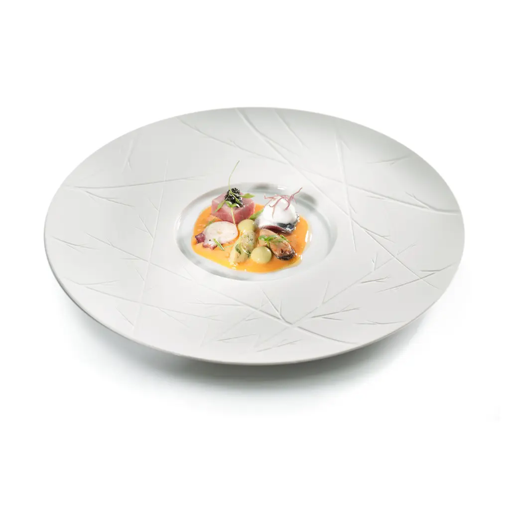 Vista Alegre’s dedication to creating exceptional plates for fine dining has garnered recognition from esteemed chefs across the globe. The Chef’s Collection exemplifies how the simplicity of a plate can be transformed into a captivating visual masterpiece. The Chef’s Collection Natura, skillfully designed by the renowned chef Vítor Matos, showcases a circular plate adorned with enchanting natural motifs. Its delicate and elegant aesthetic provides the perfect backdrop for presenting and elevating culinary creations, enhancing the overall dining experience. This set of two plates is accompanied by a book of recipes authored by the chef himself, adding an extra dimension of culinary inspiration to the collection.