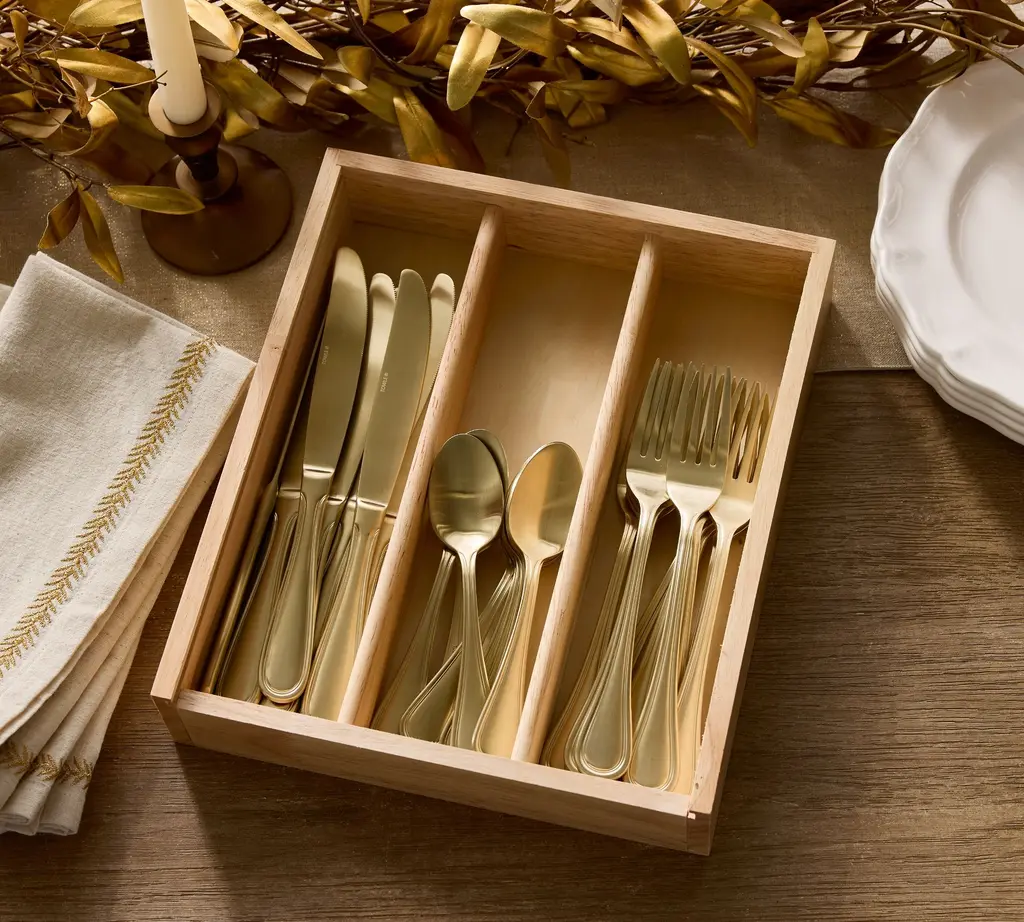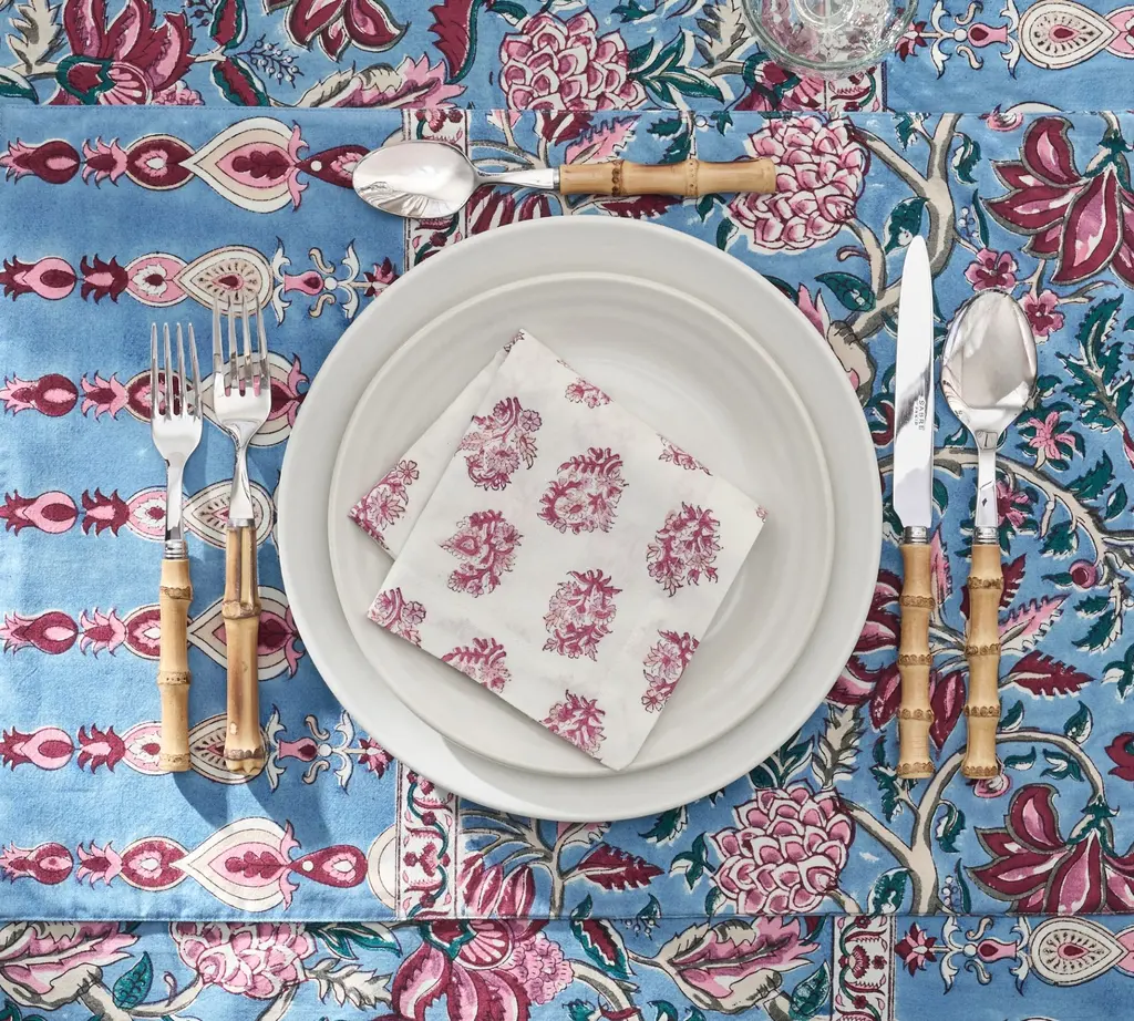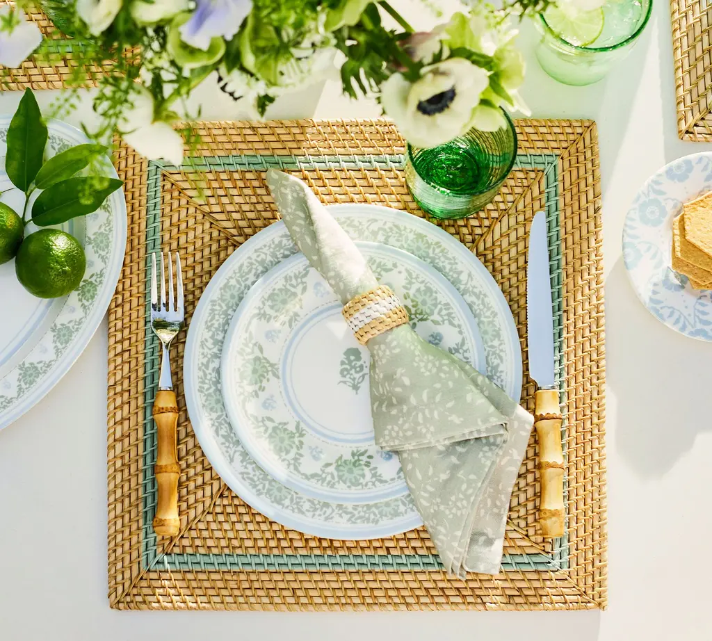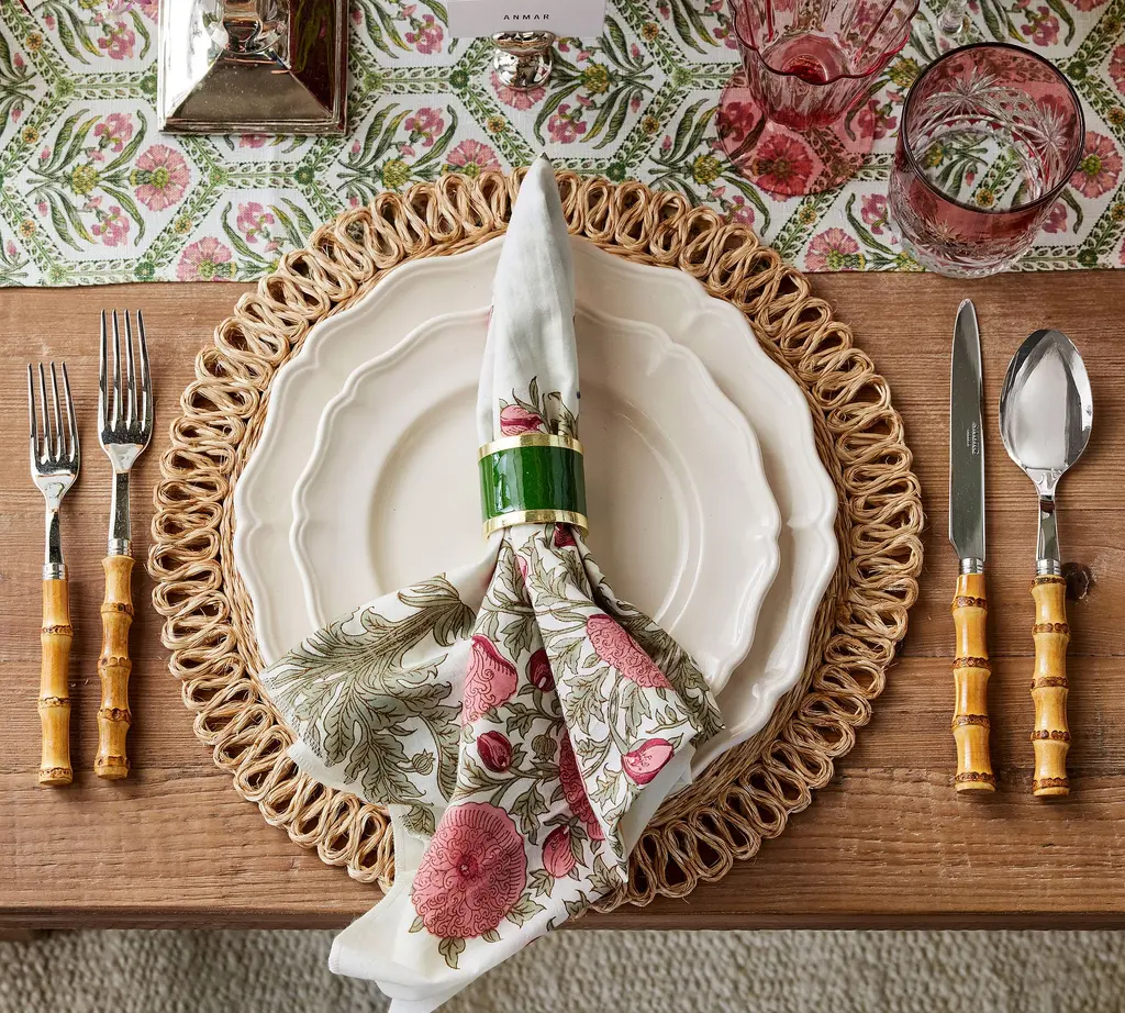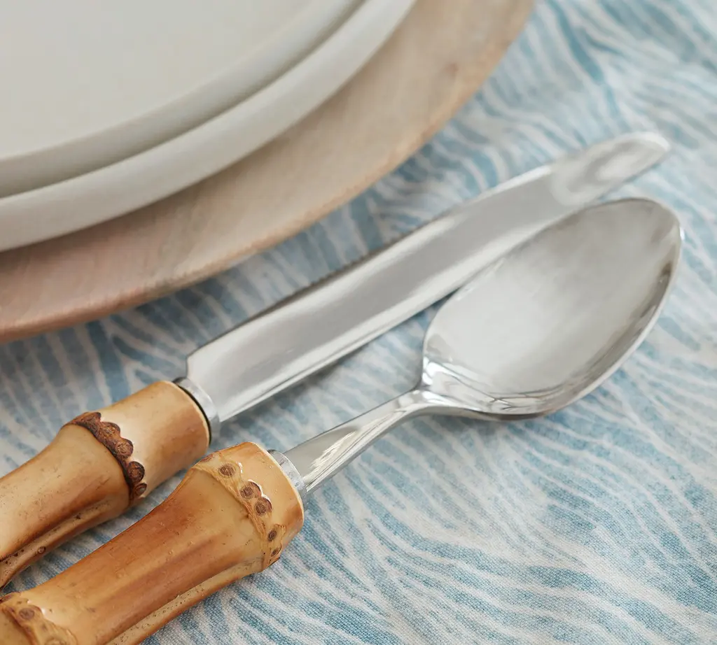The natural bamboo handles of this flatware are crafted entirely by hand. With their organic look and feel, the place settings and servers bring a fresh, casual look to the table.