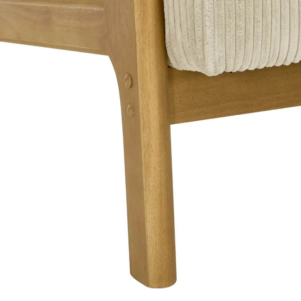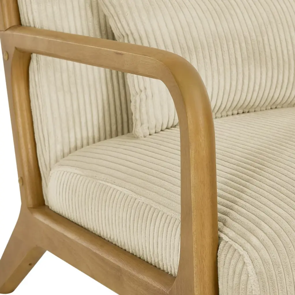 Natural Beige Wooden Lounge Chair With Ribbed Corduroy Upholstery And Cushion For Living Room, Bedroom Or Reading Corner-the Pop Home