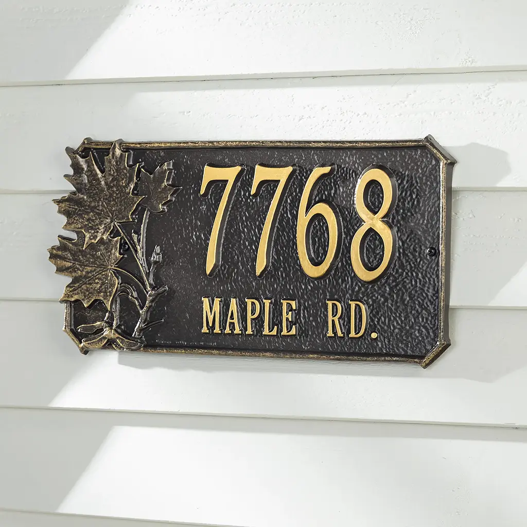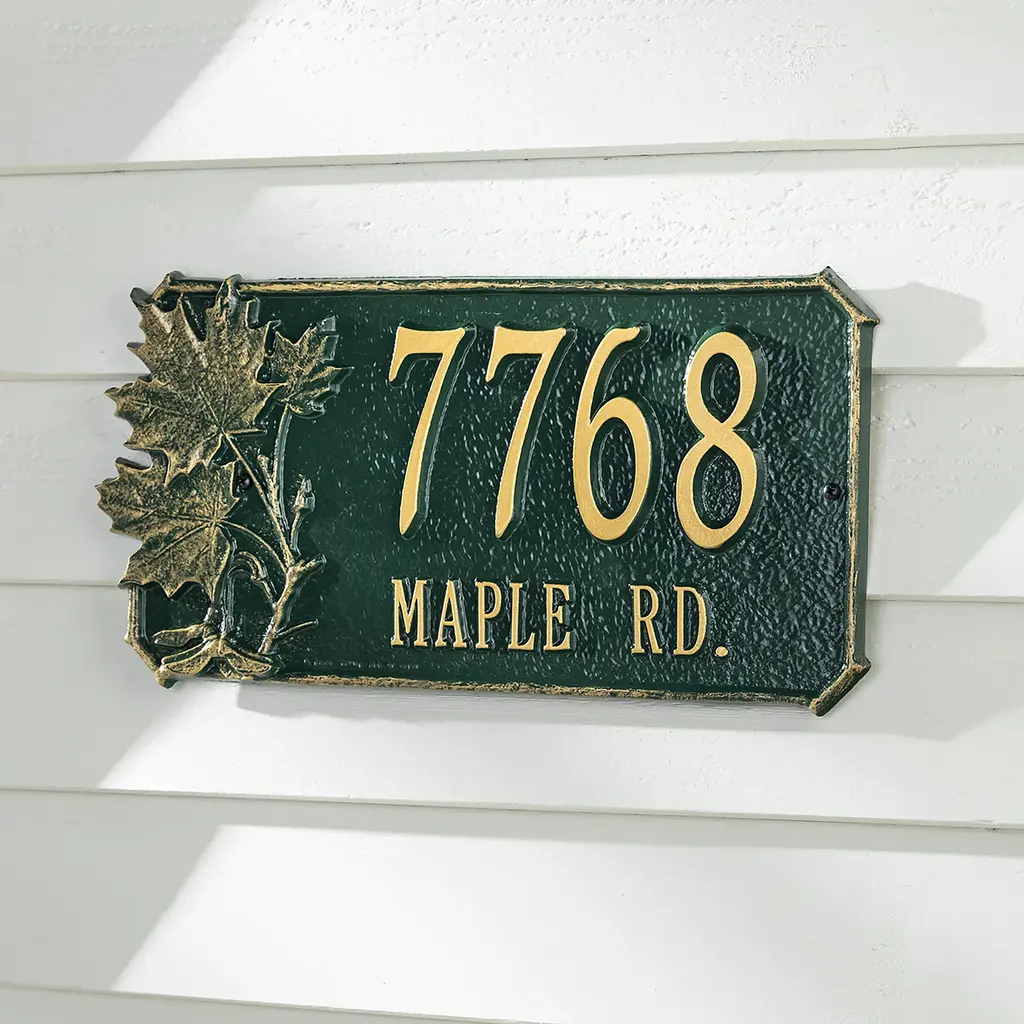 Our Natural Elements Cast Aluminum Address Plaque is the stylish and functional way to set your home apart from the rest on the block. This handsome Wall Plaque is cast from eco-friendly, recycled aluminum with a rust-free finish that stands up to the elements. Personalized house marker makes a thoughtful wedding, housewarming or anniversary gift - or an attractive addition to your own yard and home. The designs feature branches from favorite trees for a look everyone loves. Handcrafted in Michigan, this attractive, well-made plaque is made to be used and enjoyed. It will stand up to the elements and still look good year after year. Made in USA.