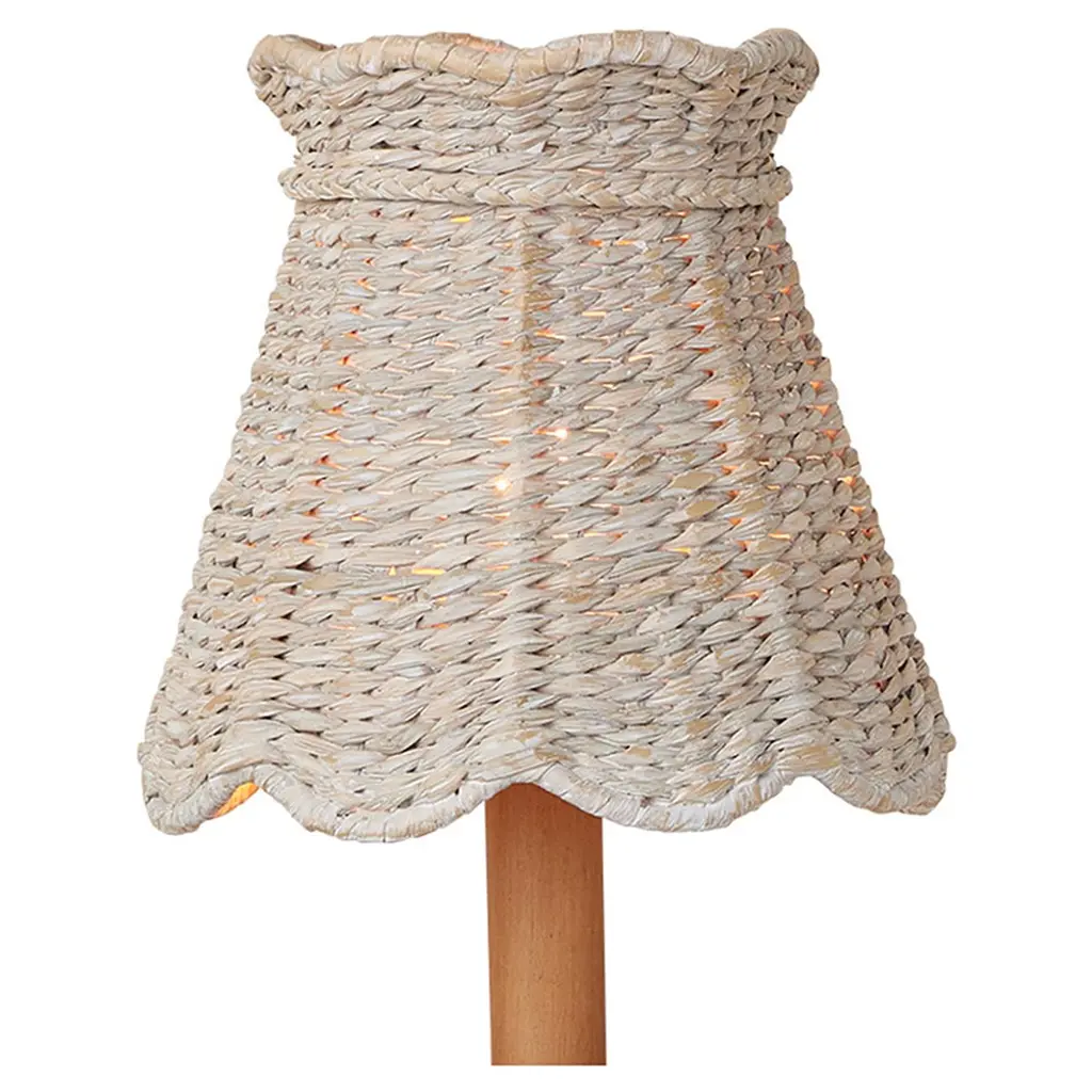 Handwoven by artisans in Vietnam of vertical strands of natural jute rope, our exclusive table lamp shade is finished with a playful scalloped edge. A neutral highlight for any of our exclusive table lamp bases, this ultra-versatile shade brings bold natural-fiber texture to a room. Its casual charm and soft scalloped base are a highlight for coastal, farmhouse and rustic decor.