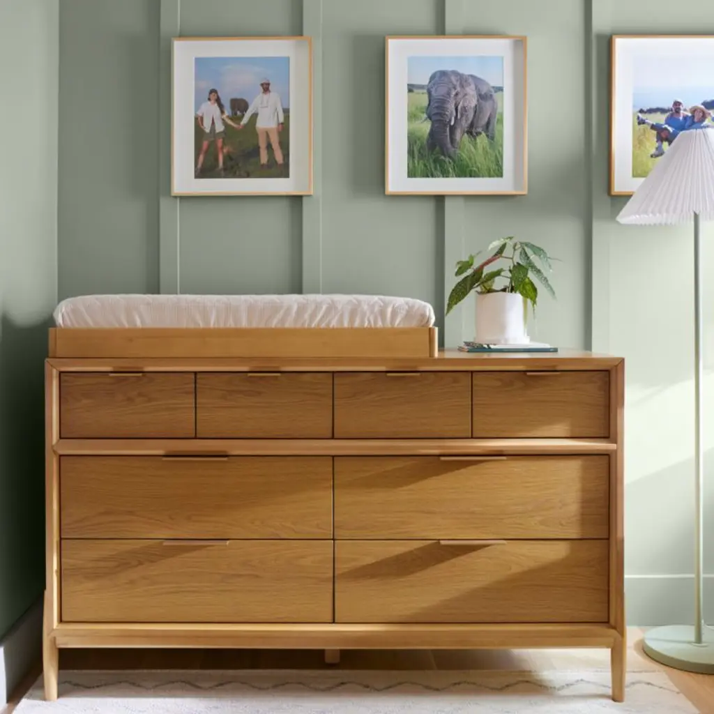 Swiftly convert your dresser into a changing table with our modern, clean-lined topper. This changing table topper complements dressers with natural oak finishes, and the necessary hardware to secure the two pieces together is included with purchase. As soon as baby outgrows diapers, you can simply detach this smartly designed topper and continue using the dresser for years to come. Easy to attach and remove, it's lined with felt to protect the dresser's surface. Changing pad sold separately.
