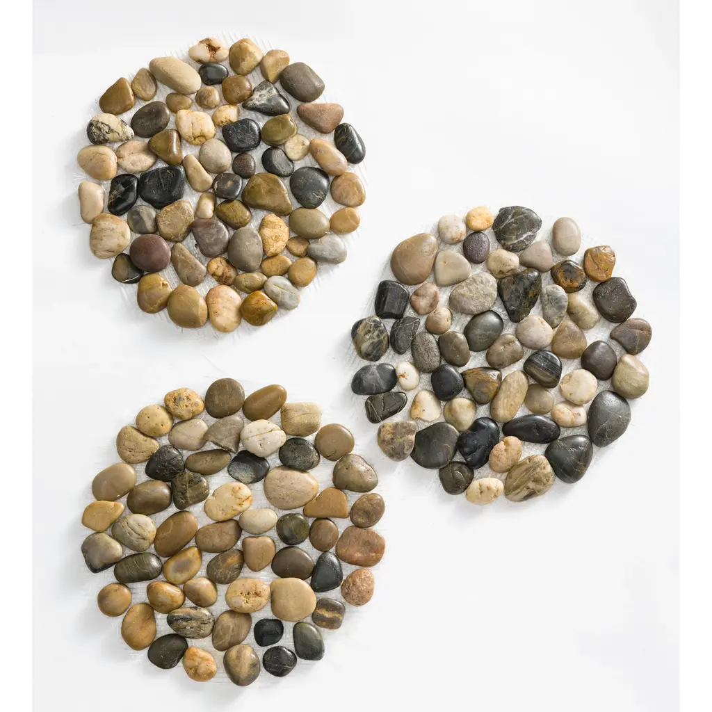 Natural River Rock Stepping Stones With Flexible Pvc Backing, Set Of 3