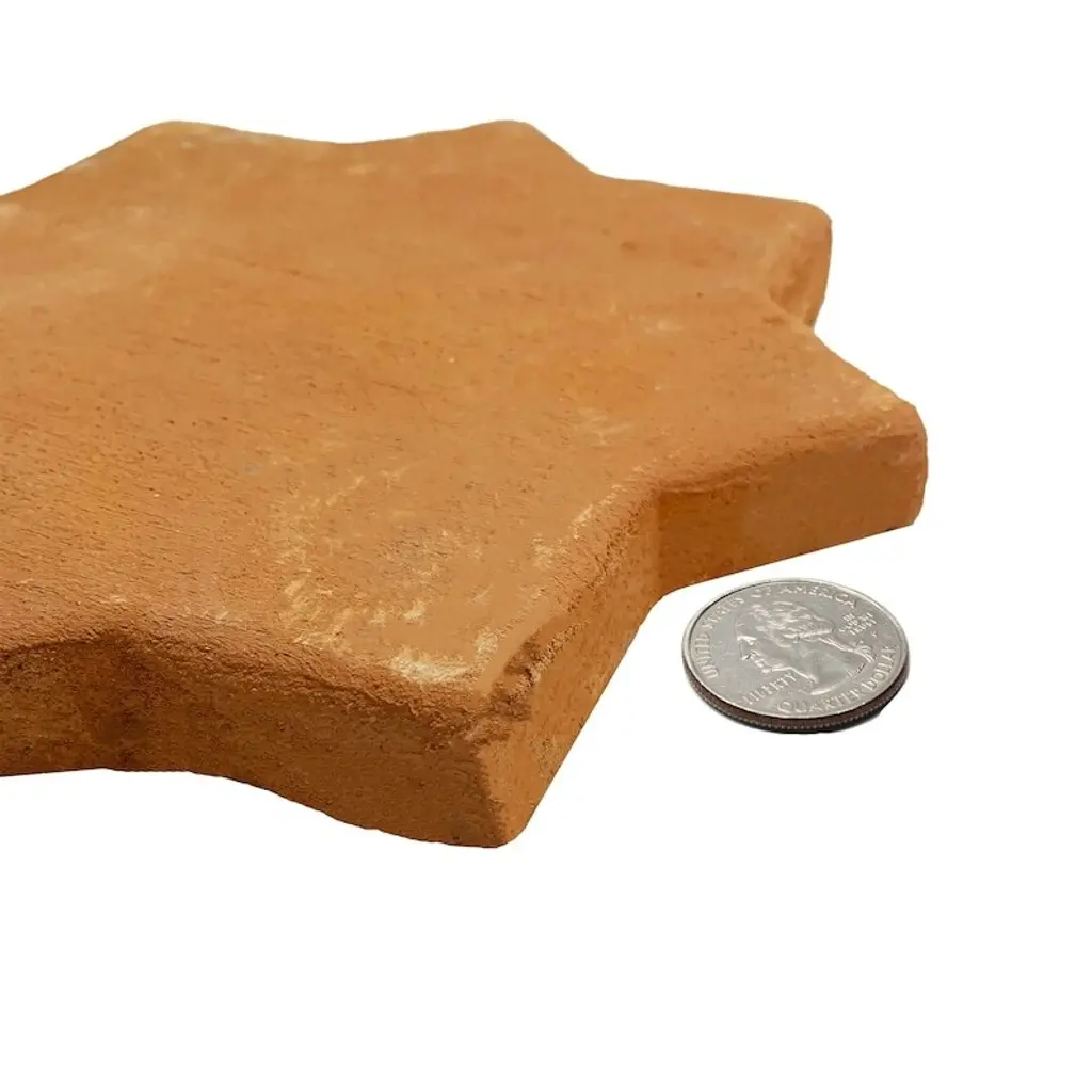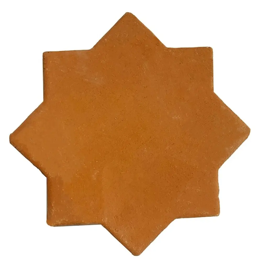 We bring our exclusively new, Terracotta collection to help you style your home. It can be an alternative to the typical tradition that is normally used.. These tiles will go great in any part of your home to give it that rustic authentic look... Great for Indoor/Outdoor, excludes outdoor areas that reach freezing temperatures. Sample is 2 tiles: including 1 cross, 1 star. Maximum of 4 samples allowed. Box includes 20 tiles: 10 crosses, 10 stars. • Brand: Moroccan Mosaic and Tile House • Type/ style: Floor and wall tile • Materials: Unpolished terra cotta clay tile • Dimensions: -Cross: 6 1/2 inches long x 6 1/2 inches wide (each) -Star: 9 inches long x 9 inches wide (each) -total coverage is 7.5 sq. ft. The variation and surface imperfections will vary as a result of the hand mixed nature of their clay body, further enhanced during the firing process. noticeable variations in thickness, size, shade and color are to be expected. • Color: Terra Cotta • Installation: Professional installation is recommended. These terracotta tiles come in their raw form, they do need to be sealed. • Hand-made, durable, indoor/ outdoor, low maintenance The handcrafted touch of artisan skill will create variations in color, size and design. Color differences may occur between the actual product and your computer screen. If buying two of the same item, slight differences will occur from piece to piece. Story Behind the Art: "It's more than tile, it's art." That simple statement is what sets the craftsmanship of Moroccan Mosaic apart from the rest. Based in the small city of Sale, Moroccan Mosaic is a family business going back 4 generations. When Simo, the current head of the business graduated from university in New York, he had little interest in the family business. But on a return trip home, he saw that the business was not doing well and set about reviving it. One important change he made was introducing black, grey, and white designs to appeal to American and European customers. It worked. When he started, they employed 2 workers and now they have nearly 80 on staff. The workshop itself is fairly simple, and the techniques used to create the tiles are steeped in tradition. Some modern equipment is available, though the workers prefer to use the more rustic tools. The creative process is time intensive and done by hand, as Simo insists on no corners be cut or production be rushed. Environmentally responsible and resource efficient, no chemicals are used at any step. For example, colors used come from nature literally. Green comes from mint leaves, orange from orange peel, and black from charcoal. The tiles themselves are a simple mixture of cement, sand, and granite powder. Moroccan Mosaic hires only local workers, teaching them a valued skill as well as paying them fair wages. Simo's goals for his business are to share the tradition of gorgeous Moroccan tile, grow the business, and employ more and more workers.Imported Country of Origin: Morocco Disclaimers & Disclosures: Please be aware that if you order more than 151 pounds of tile or flooring, the order may need to be shipped Freight and our Oversized Item Delivery/Return policy will apply. Please click here for more information.