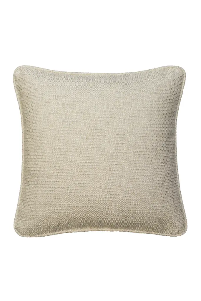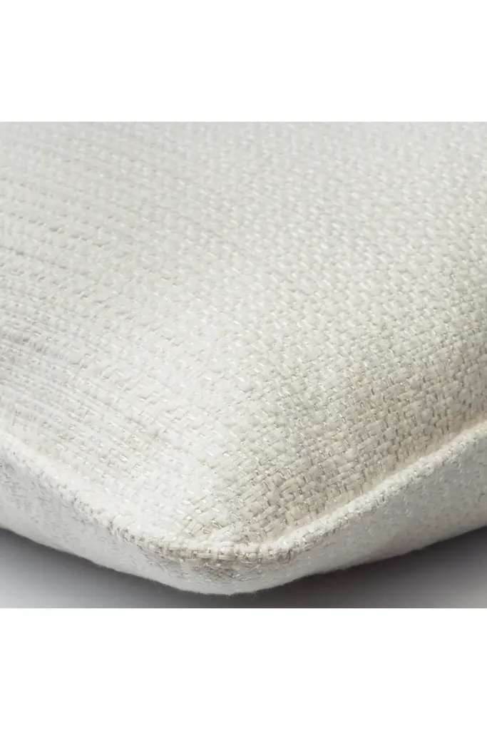 A luxurious cushion made from Tender, a natural weave in off-white with flashes of shiny viscose slub yarns to add a touch of glamour. ldeal for introducing a layer of texture and color to any sofa, armchair, or bed, this cushion is stuffed with an ethically sourced wool pad for added comfort.The cushions in our Boathouse collection are filled with responsibly sourced wool from British farms, in partnership with The Woolkeepers®.These wool pads are breathable, soft, and thermoregulating, whilst also being kinder to the planet by promoting biodiversity. Scan the QR code on your Andrew Martin cushion filler to learn everything there is to know about where the wool comes from.Made In The UK - White, Gray, Beige