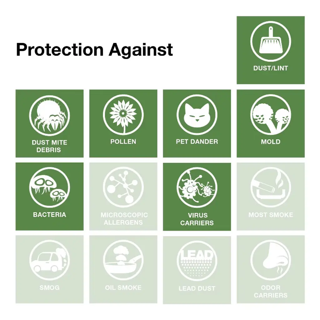 The MERV 8 rating means it is third-party certified to effectively reduce common indoor air pollutants such as household dust, pollen, dander and lint. MERV ratings provide a standard comparison of air filter performance. A higher MERV rating signifies gr