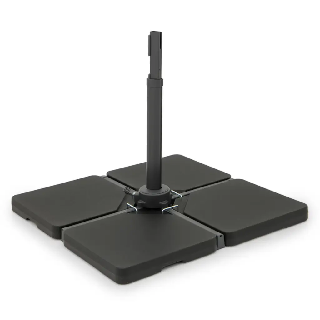 Lounge in the shade on hot summer days with this Umbrella Base by Nature Spring. The four interlocking weighted plates of this patio umbrella stand can contain a total of 220lbs of sand to hold your offset or cantilever umbrella steady. With its easy-fill spouts, screw-top lids, and convenient carrying handle for improved portability, these umbrella stands for outside make it simple to transport your umbrella just about anywhere.