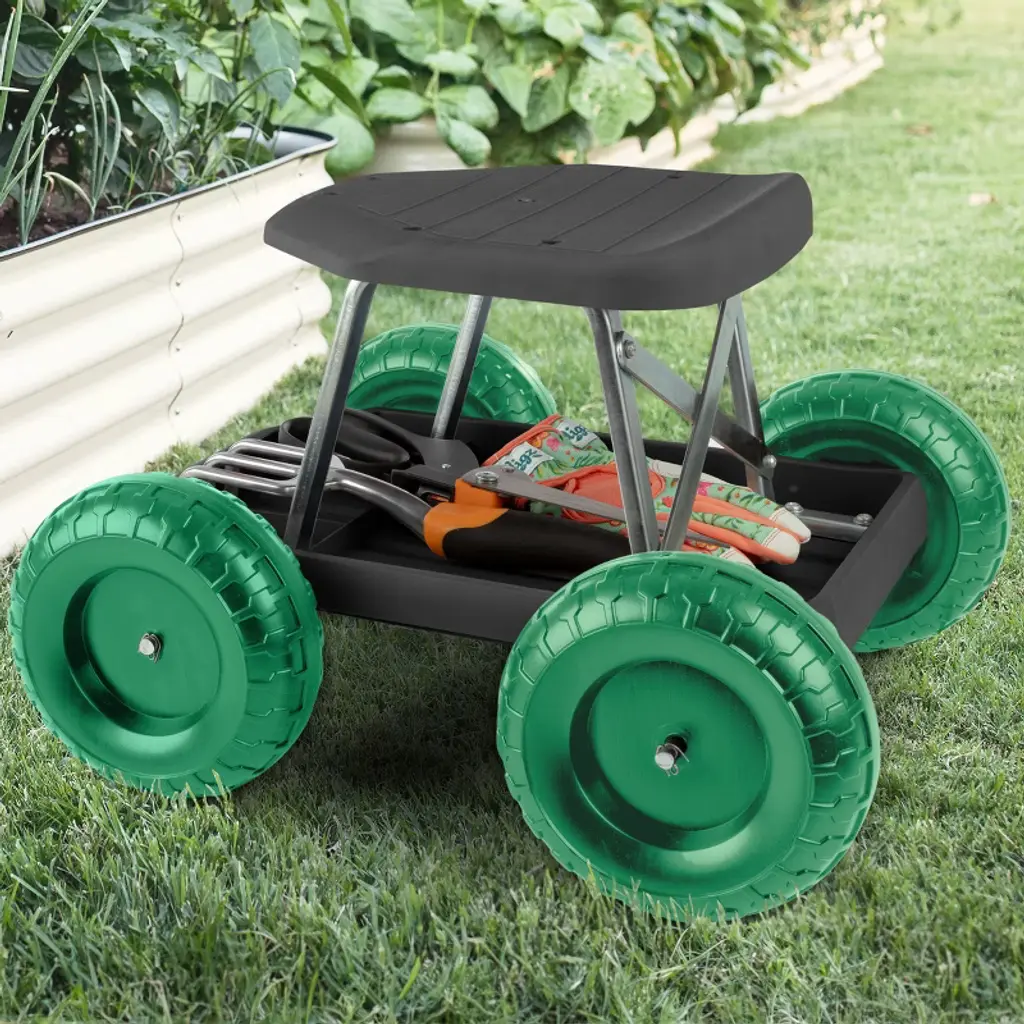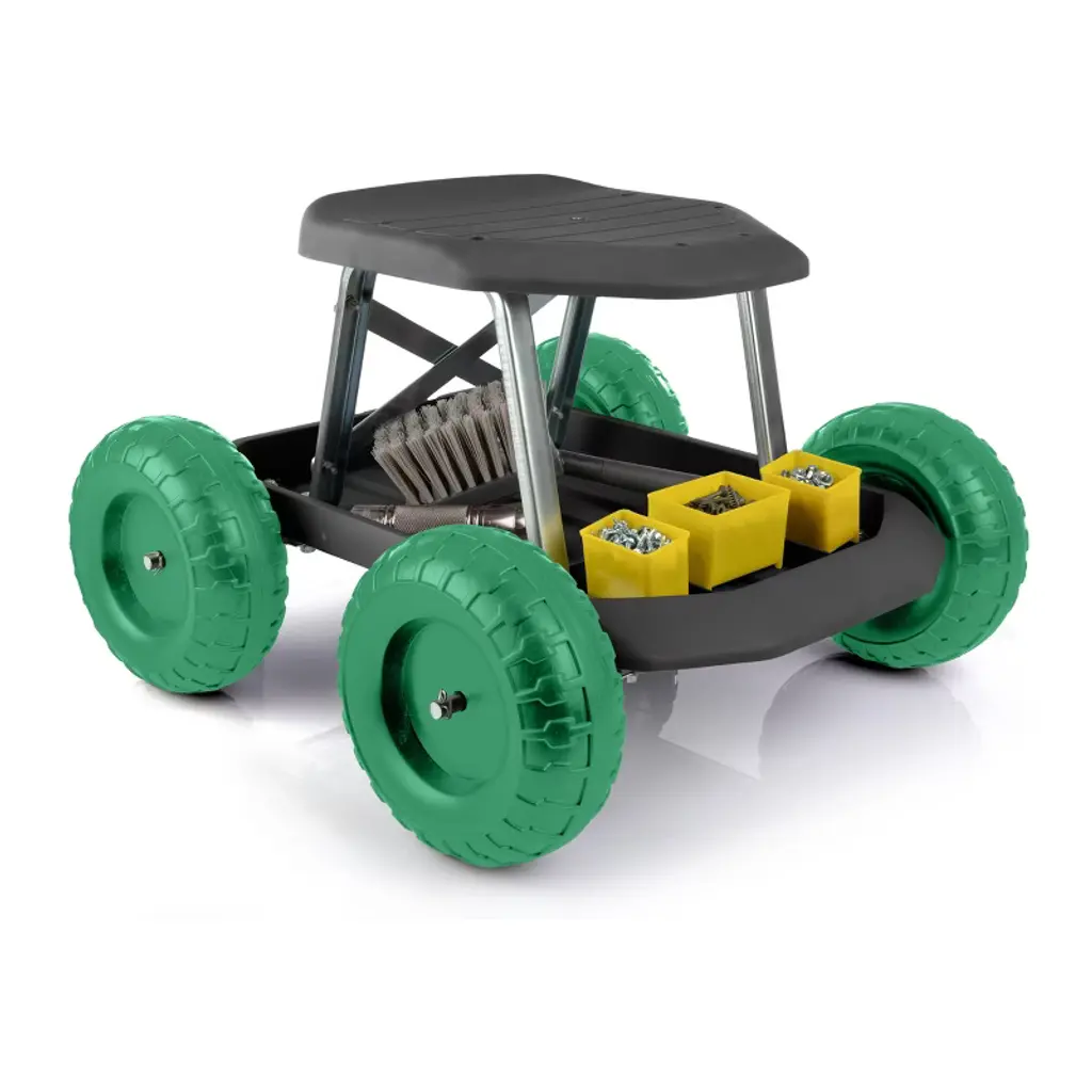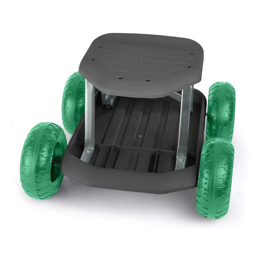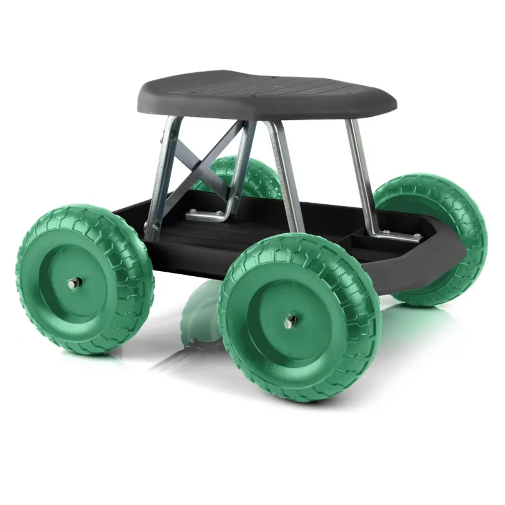 Nature Spring Rolling Garden Seat With Wheels - Black/green