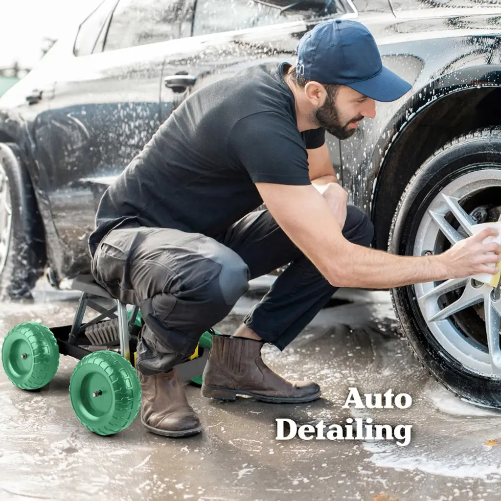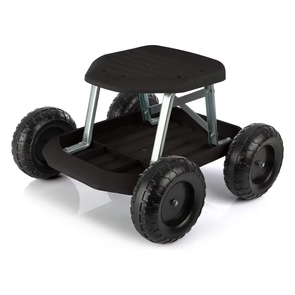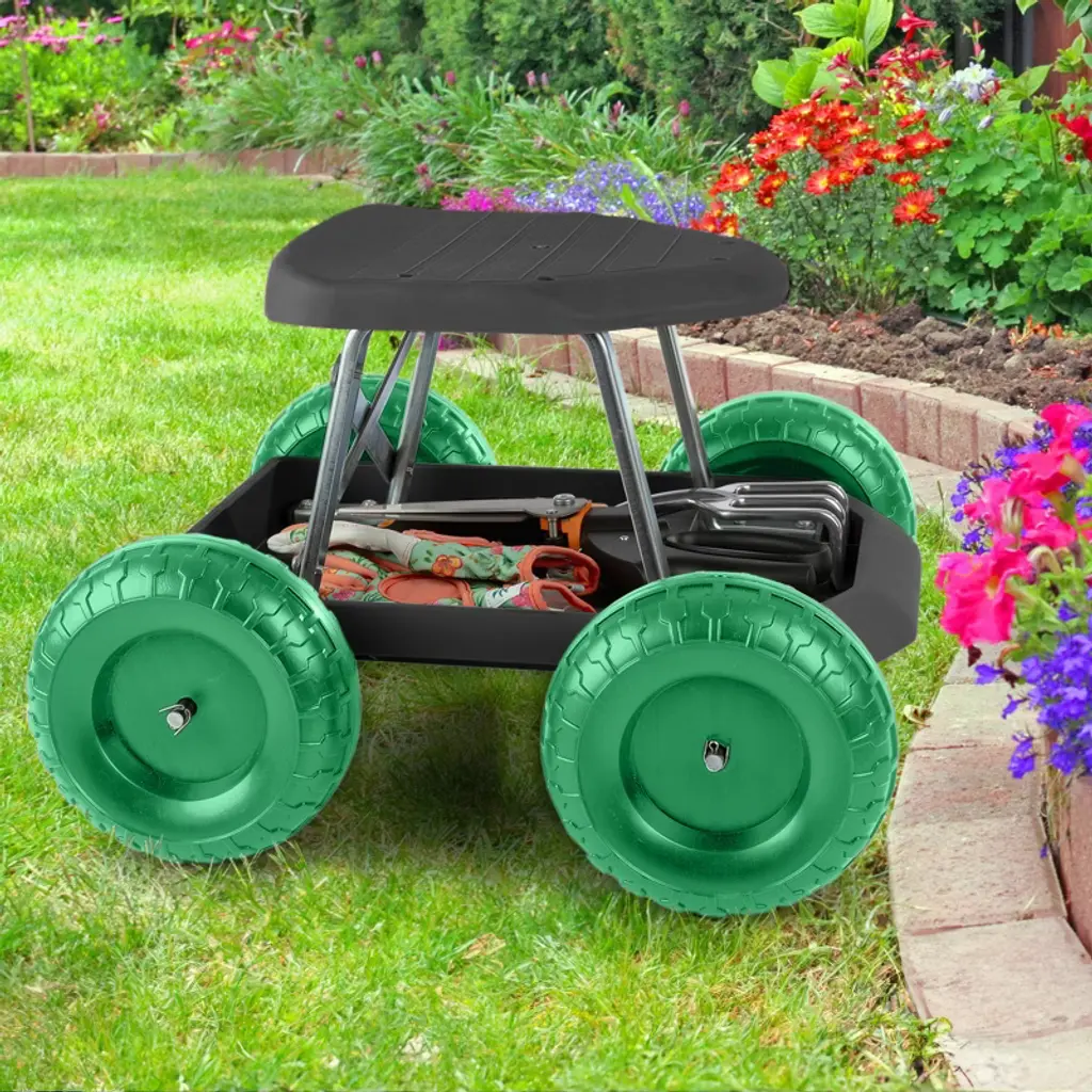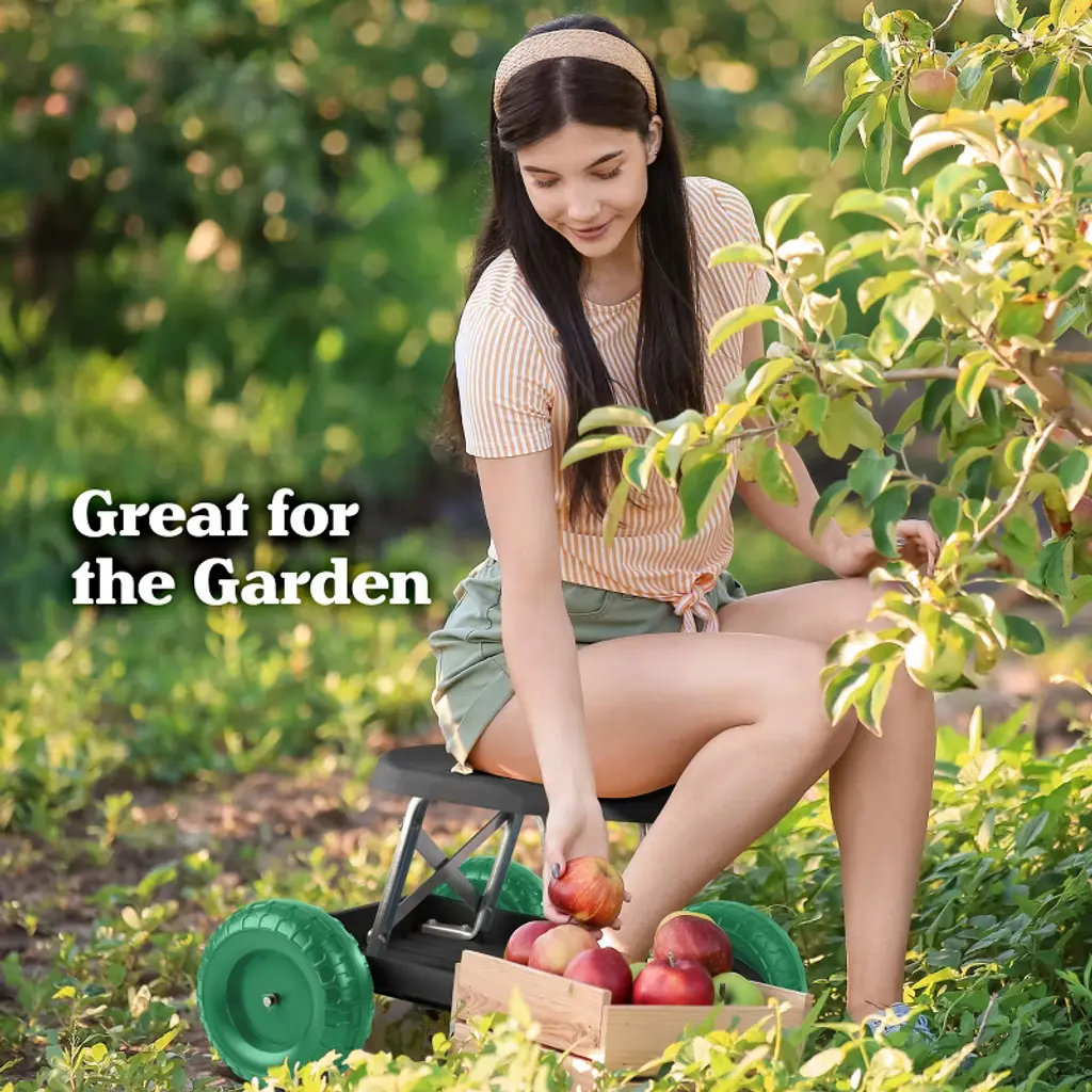 Nature Spring Rolling Garden Seat With Wheels - Black/green