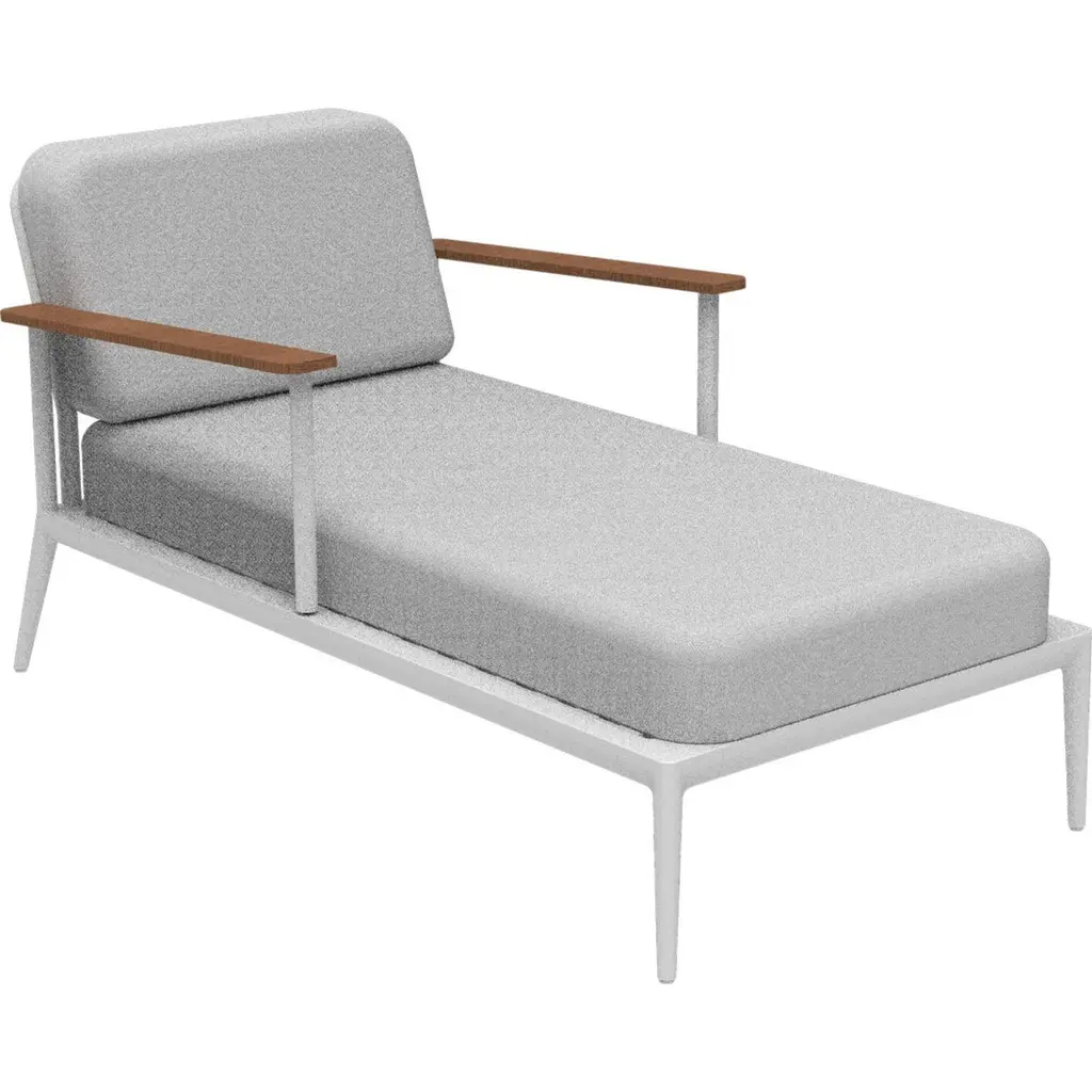 Nature White Divan by MOWEEDimensions: D155 x W83 x H81 cm (seat height 42 cm).Material: Aluminum, upholstery and Iroko wood.Weight: 30 kg.Also available in different colors and finishes. Please contact us.An unmistakable collection for its beauty and robustness. A tribute to the Valencian manufacturing tradition as a challenge to innovation, making it sustainable and durable. A fresher version, Nature. It presents touches of natural and sustainable wood, which gives warmth and comfort, and makes it a unique collection.Möwee is part of the work, effort and commitment of Gaviota, a leading company in the outdoor sector. It was set up as an independent venture to broaden horizons in the outdoor furniture world, with its own distinctive character and way of doing things. Freshness, simplicity, quality and design are at the heart of its DNA.