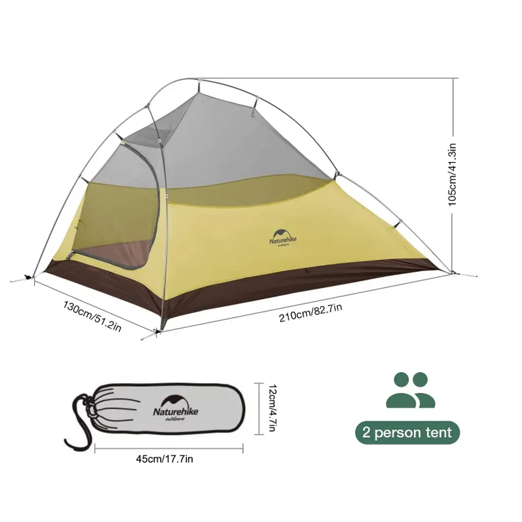 Naturehike Cloud Up Free Standing 2 Person Backpacking Tent Ultralight Nylon Double Layer Camping Tents For Two Person,green