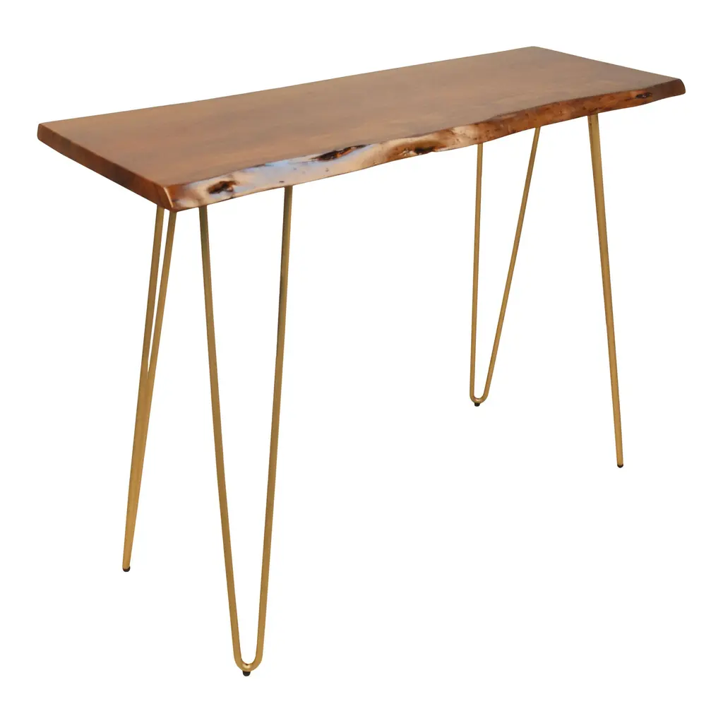 Breathtaking solid wood perfectly preserved in its most natural state makes this Nature's Live Edge Collection not only beautiful, but completely one-of-a-kind. Our artisans select pieces of Acacia hardwood and then leave the natural edge of the tree whole to create a truly stunning visual effect. The dimensions of each piece will be slightly unique due to the live edge. Sleek hairpin legs bring attention to the rich finish that makes every single inch of the hardwood grain stand out and look amazing. This collection table will make a stunning addition to any home decor with a combination of modern design and natural beauty.