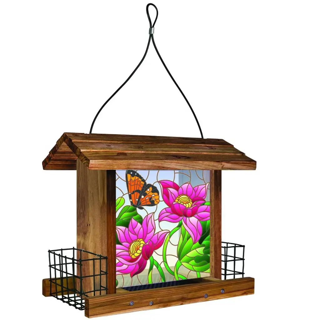 Add a touch of classic elegance to your yard with this charming gazebo bird feeder! Use a wide range of seed varieties to attract a variety of beautiful birds like Cardinals, woodpeckers, nuthatches, finches, and more to your backyard. This feeder features a channeled and perforated base for better water drainage, keeping your seed fresh longer. The wide opening and push toggle roof make for easier filling while the feeder is hanging. The seed diverter base directs the seed to the feeding area, while four fold-out perches provide ample space for small and large birds.